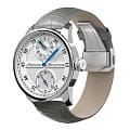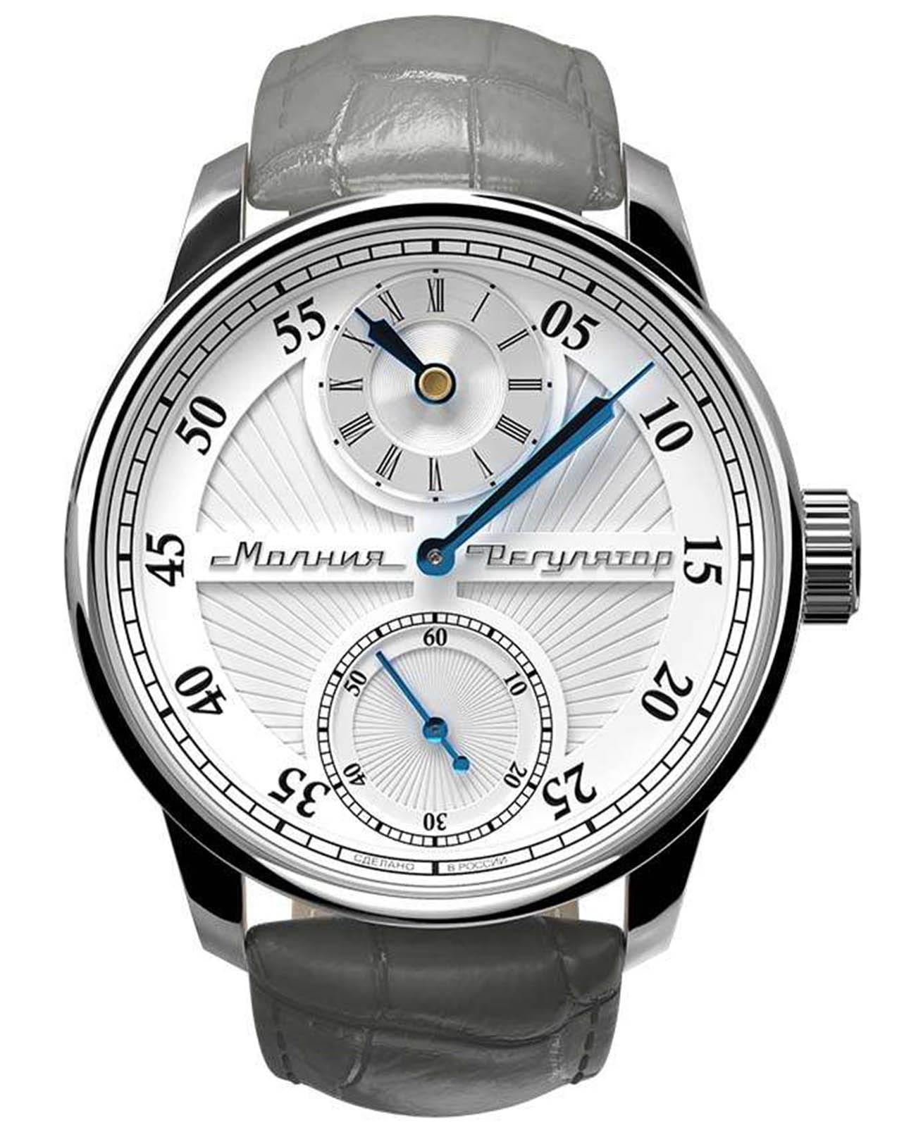 Мужские механические часы с ручным подзаводом — это аксессуар от легендарного бренда «МОЛНИЯ», созданный на Челябинском часовом заводе. Корпус диаметром 42 мм выполнен из нержавеющей стали. Циферблат оформлен индексами и стрелками. Малая секундная стрелка вынесена на отдельный субциферблат. Циферблат защищён сапфировым стекломСапфировое стеклоПрочный и надёжный материал из кристалла сапфира синтетического происхождения, характеризующийся особой твёрдостью и устойчивостью к царапинам и повреждениям.. Механизм — мануфактурный калибр 3603RS, полностью собранный вручную, с декорированными деталями, которые видны через прозрачную заднюю крышку. Часы оснащены кожаным ремешком серого цвета с раскладной застёжкойРаскладная застёжкаТакой тип застёжки используется только на браслетах из металла. Она никогда не раскрывается полностью, происходит разделение на 2 и более частей. Раскладывающая застёжка снизит вероятность потери часов к минимуму.. Водонепроницаемость 100 м позволяет использовать часы для плавания и повседневного ношения. Идеальный выбор для тех, кто ценит российское качество и традиции.