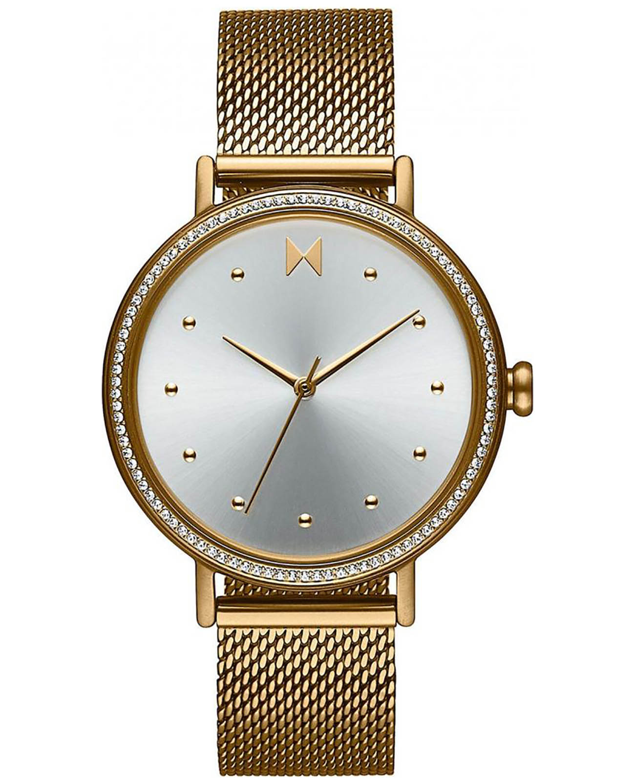 Женские кварцевые часы MVMT 28000131-D – лаконичная красота и изысканная элегантность. Оригинальная модель с классическим оформлением станет превосходным завершением образа, наделив его индивидуальным характером. Корпус выполнен из нержавеющей стали с IP-покрытиемIP-покрытиеМетод ионного напыления. Демонстрирует повышенную устойчивость к истиранию, окислению и химическим веществам. Под воздействием высокого давления и температуры около 1500°C молекулы металла надёжно соединяются с частицами корпуса часов. золотистого цвета, диаметром 36 мм и толщиной 7,4 мм, что обеспечивает долговечность и утончённый внешний вид. Закаленное минеральное стеклоМинеральное стеклоМинеральное стекло представляет собой искусственно выращенный минерал кварца. Такое стекло отличается особой устойчивостью к повреждениям и царапинам. Уступает по некоторым качествам сапфировому стеклу. защищает циферблат от царапин. Метки в виде точек, 12-ти часовая метка в виде фирменного логотипа MVMT. Гладкая заводная головка и застежка украшены фирменным логотипом. БезельБезельВнешний ободок, закрепляющий стекло. В спортивных часах так называется поворотное кольцо с делениями на циферблате, выполняет роль таймера – замеряет отрезки времени на шкале. Неподвижный безель – элемент декора. Однонаправленно вращающийся безель на дайверских часах позволяет фиксировать моменты погружения и выныривания на поверхность. декорирован кристаллами. Стальной браслет миланского плетения с IP-покрытиемIP-покрытиеМетод ионного напыления. Демонстрирует повышенную устойчивость к истиранию, окислению и химическим веществам. Под воздействием высокого давления и температуры около 1500°C молекулы металла надёжно соединяются с частицами корпуса часов. на раскладном замкеРаскладная застёжкаТакой тип застёжки используется только на браслетах из металла. Она никогда не раскрывается полностью, происходит разделение на 2 и более частей. Раскладывающая застёжка снизит вероятность потери часов к минимуму. обеспечивает комфортное ношение. Водозащита 50 метров позволит защитить корпус от случайных брызг или капель дождя. Женский аксессуар, который покорит вас своим элегантным дизайном. Эти часы станут изысканным акцентом в вашем образе, подчеркивая вашу утонченность и хороший вкус.