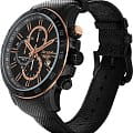 Ремешок выполнен из комбинации кожи и текстиля, обеспечивая комфорт при носке и добавляя модели уникальный внешний вид. Толщина корпуса составляет 13 мм, что придаёт часам солидный вид.