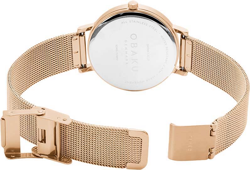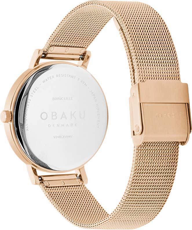 Женские датские кварцевые часы Obaku Mesh V248LXVIMV, кварцевый механизм с высокой точностью. Класс водозащиты: 30 метров, позволит защитить корпус от случайных брызг или капель дождя. Корпус часов изготовлен из стали, золотистого цвета.