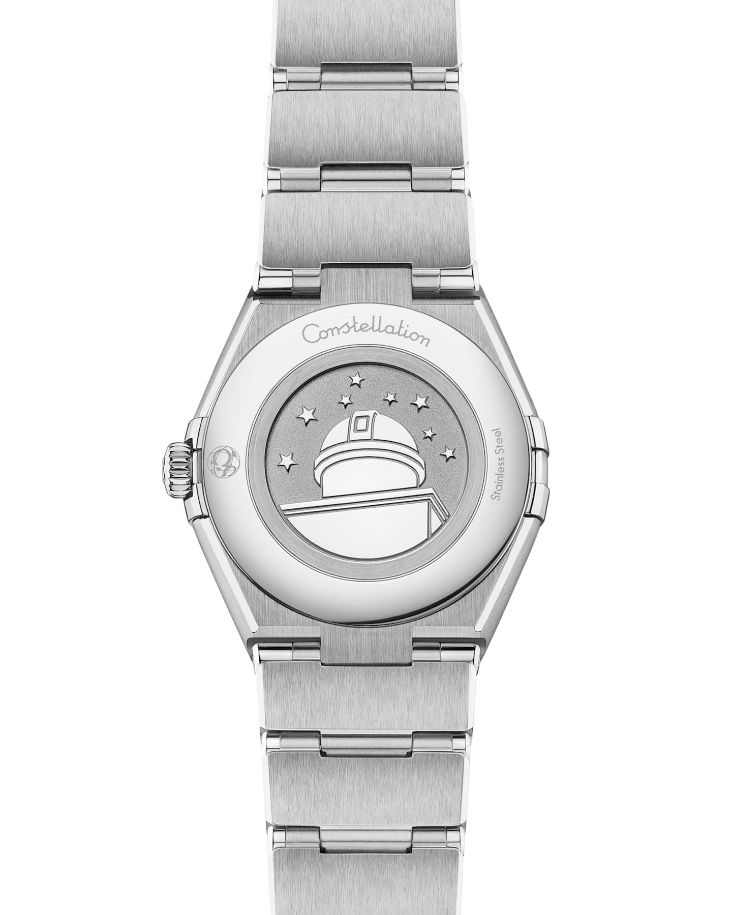 С 1952 года часы OMEGA Constellation черпают вдохновение в безупречном движении небесных светил. В этой исключительной модели космическая тема раскрывается через циферблат, созданный из фрагмента настоящего метеорита. 28-миллиметровый корпус с интегрированным браслетом из нержавеющей стали украшен характерными полукруглыми скосами и безелемБезельВнешний ободок, закрепляющий стекло. В спортивных часах так называется поворотное кольцо с делениями на циферблате, выполняет роль таймера – замеряет отрезки времени на шкале. Неподвижный безель – элемент декора. Однонаправленно вращающийся безель на дайверских часах позволяет фиксировать моменты погружения и выныривания на поверхность. с бриллиантовым паве. Уникальный циферблат из железного метеорита с лавандовым покрытием демонстрирует неповторимый природный узор - каждый экземпляр становится единственным в своем роде. Бриллиантовые часовые индексы гармонично сочетаются со стрелками и звездой Constellation из 18-каратного белого золота18-каратное золотоОбозначение по каратной системе пробирования, оно показывает, сколько драгоценного металла содержится в изделии. 18 карат - в составе 75% чистого золота, соответствует 750 пробе.