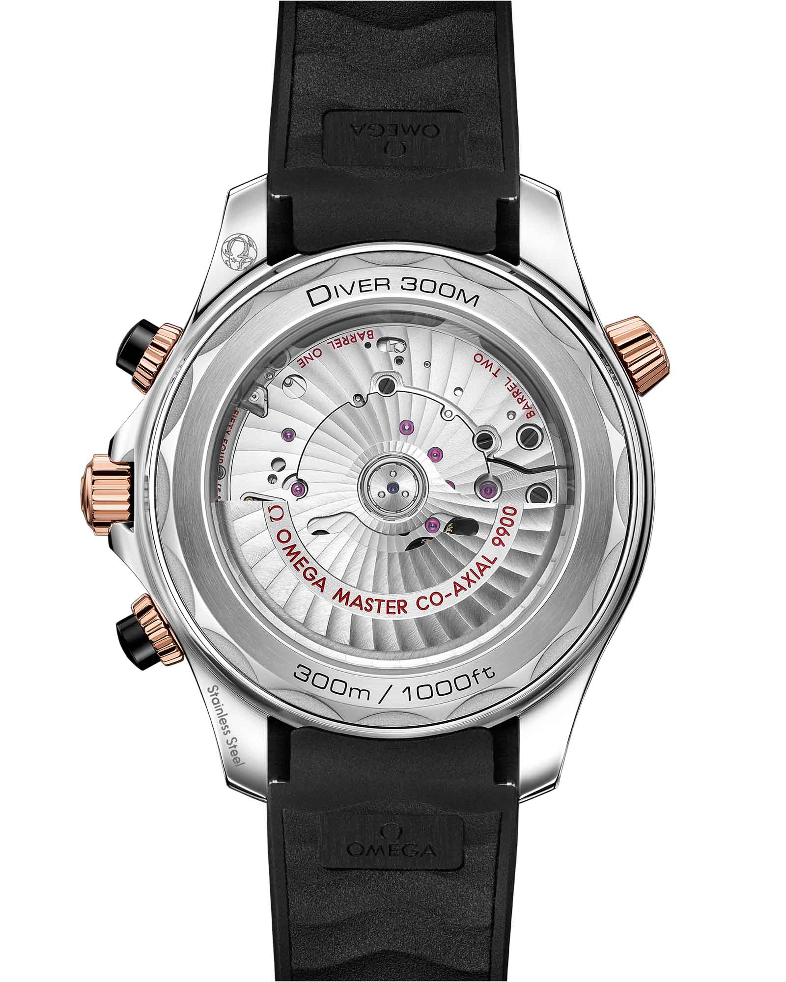 гармонично сочетаются с основными стрелками и индексами, заполненными люминесцентным составом Super-LumiNovaЛюминесцентное покрытиеПозволяет считывать показания времени в темноте. Производители наносят на стрелки, часовые индексы, безель или поверхность циферблата светонакопительный состав, дающий холодное свечение., обеспечивающими безупречную читаемость в любых условиях. Стильный черный каучуковый ремешок подчеркивает спортивный характер модели, а через сапфировое стеклоСапфировое стеклоПрочный и надёжный материал из кристалла сапфира синтетического происхождения, характеризующийся особой твёрдостью и устойчивостью к царапинам и повреждениям. задней крышки можно наблюдать за безупречной работой калибра OMEGA Master Chronometer 9900 - истинного шедевра часового искусства.