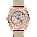 Omega Seamaster Aqua Terra выполнены в симметричном корпусе из 18K Sedna™ золота с волновым узором на задней крышке. Безель украшен бриллиантами, а циферблат дополнен окошком даты на 6 часах и малым секундным циферблатом с кольцом из 18К Sedna™ золота, инкрустированным бриллиантами. Стрелки и метки оснащены люминесцентным покрытиемЛюминесцентное покрытиеПозволяет считывать показания времени в темноте. Производители наносят на стрелки, часовые индексы, безель или поверхность циферблата светонакопительный состав, дающий холодное свечение. для лучшей читаемости в темноте. Индексы выполнены в виде бриллиантов, установленных в держатели из 18К Sedna™ золота. Калибр Omega 8803 сертифицирован как Master Chronometer — гарантия высочайшей точности и устойчивости к магнитным полям. Запас хода составляет 55 часов. Защиту циферблата обеспечивает сапфировое стеклоСапфировое стеклоПрочный и надёжный материал из кристалла сапфира синтетического происхождения, характеризующийся особой твёрдостью и устойчивостью к царапинам и повреждениям. с антибликовым покрытиемАнтибликовое покрытиеСлой оксида металла в 0,13-0,3 микрон, благодаря которому стекло часов не бликует и не отражает свет. Антибликовое покрытие уменьшает отражение света в 10 раз, обеспечивая отличную читаемость показателей циферблата. с обеих сторон. Водозащита позволяет использовать часы в воде без риска повреждения. Диаметр корпуса — 38 мм, между "ушками" — 19 мм, толщина — 12.7 мм. Часы установлены на кожаный ремешок. Вес модели — около 111 грамм. Это сочетание премиального качества, технологичности и классического дизайна.