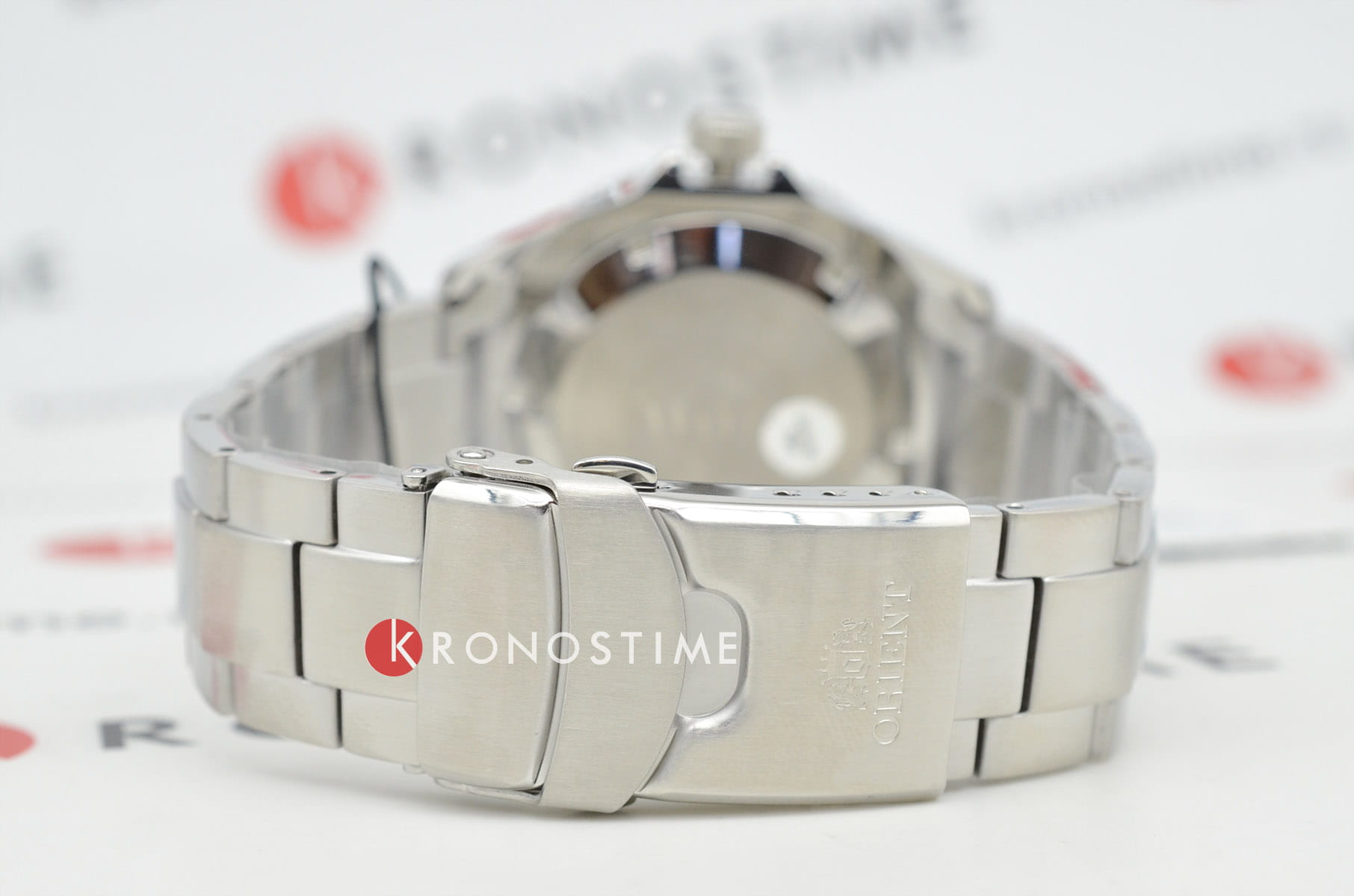 Мужские механические часы с автоподзаводом Orient Diving Sport Automatic RA-AA0915R сочетают в себе прочность, стиль и функциональность. Эти часы оснащены минеральным стекломМинеральное стеклоМинеральное стекло представляет собой искусственно выращенный минерал кварца. Такое стекло отличается особой устойчивостью к повреждениям и царапинам. Уступает по некоторым качествам сапфировому стеклу., которое защищает циферблат от царапин и других возможных повреждений. Корпус и браслет часов изготовлены из высококачественной нержавеющей стали, что обеспечивает их долговечность и устойчивость к износу. БезельБезельВнешний ободок, закрепляющий стекло. В спортивных часах так называется поворотное кольцо с делениями на циферблате, выполняет роль таймера – замеряет отрезки времени на шкале. Неподвижный безель – элемент декора. Однонаправленно вращающийся безель на дайверских часах позволяет фиксировать моменты погружения и выныривания на поверхность. с PVD-покрытиемPVDУльтратонкое покрытие наносится в технике вакуумного напыления, сочетает в себе нитрид титана особой прочности со слоем золота или оксида хрома. Несёт в себе декоративную или защитную функцию. подчеркивает спортивный дизайн часов и улучшает их стойкость к внешним воздействиям. В положении «3 часа» расположено окошко дня недели и даты, что позволяет всегда быть в курсе актуальной информации. Механизм часов оснащен 22 камнями и функционирует с частотой 21 600 полуколебаний в час, обеспечивая высокую точность работы. Запас хода составляет 40 часов, что даёт возможность носить часы без частых подзаводов. Стрелки и метки покрыты люминесцентным покрытиемЛюминесцентное покрытиеПозволяет считывать показания времени в темноте. Производители наносят на стрелки, часовые индексы, безель или поверхность циферблата светонакопительный состав, дающий холодное свечение., что значительно упрощает чтение времени в тёмное время суток. Циферблат выполнен по технологии Sunray («солнечные лучи»), придавая ему привлекательный внешний вид. Метки представлены в виде штрихов, что дополняет общий минималистичный и строгий стиль часов. Класс водонепроницаемости 200 метров делает эти часы прекрасным выбором для плавания, ныряния и других водных активностей. Стальной браслет на раскладной застёжкеРаскладная застёжкаТакой тип застёжки используется только на браслетах из металла. Она никогда не раскрывается полностью, происходит разделение на 2 и более частей. Раскладывающая застёжка снизит вероятность потери часов к минимуму. обеспечивает комфортное и надёжное крепление на руке.