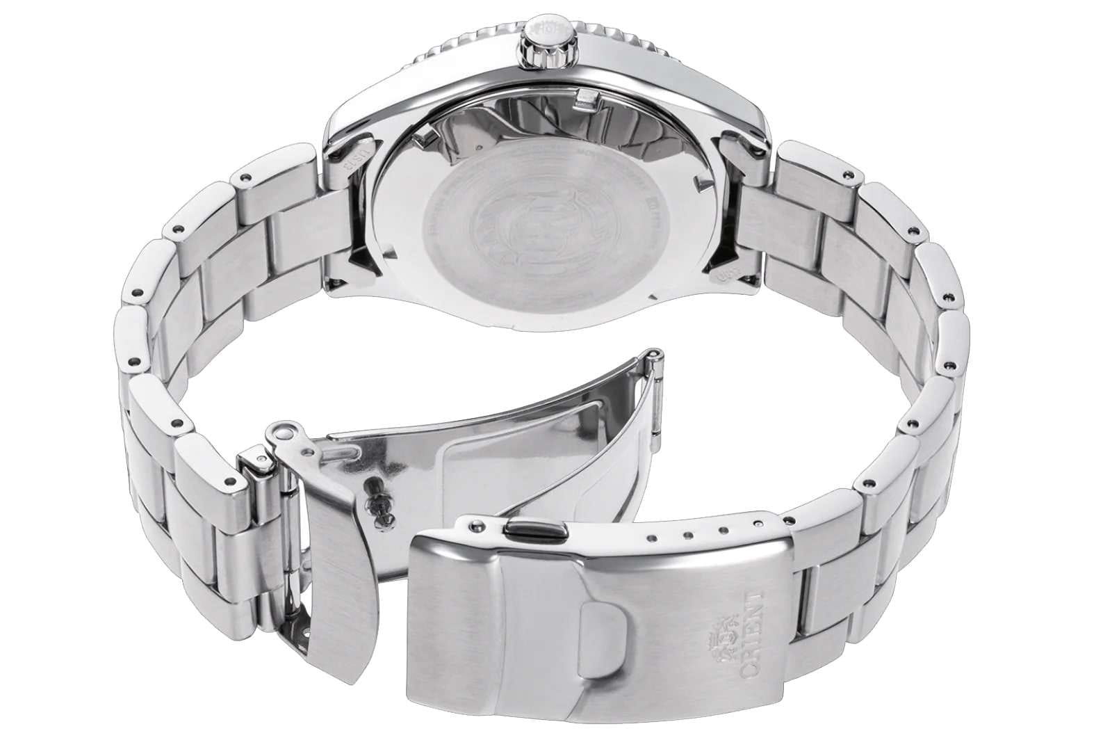 Orient RA-AC0Q02L — стильные и надёжные часы, созданные для активного образа жизни и водных приключений. Корпус диаметром 40 мм выполнен из нержавеющей стали, что обеспечивает прочность и долговечность. Однонаправленный вращающийся безельБезельВнешний ободок, закрепляющий стекло. В спортивных часах так называется поворотное кольцо с делениями на циферблате, выполняет роль таймера – замеряет отрезки времени на шкале. Неподвижный безель – элемент декора. Однонаправленно вращающийся безель на дайверских часах позволяет фиксировать моменты погружения и выныривания на поверхность. позволяет точно отслеживать время погружения. Синий циферблат украшен накладными часовыми индексами и стрелками с люминесцентным покрытиемЛюминесцентное покрытиеПозволяет считывать показания времени в темноте. Производители наносят на стрелки, часовые индексы, безель или поверхность циферблата светонакопительный состав, дающий холодное свечение., что гарантирует отличную читаемость. Окошко даты расположено на отметке «3 часа» для удобства. Защиту циферблата обеспечивает сапфировое стеклоСапфировое стеклоПрочный и надёжный материал из кристалла сапфира синтетического происхождения, характеризующийся особой твёрдостью и устойчивостью к царапинам и повреждениям., устойчивое к царапинам. Внутри установлен автоматический механизм Orient калибра F6722 с возможностью ручного завода и функцией стоп-секунды, обеспечивающий точность хода и запас энергии до 40 часов. Часы укомплектованы браслетом из нержавеющей стали, а раскладная застёжкаРаскладная застёжкаТакой тип застёжки используется только на браслетах из металла. Она никогда не раскрывается полностью, происходит разделение на 2 и более частей. Раскладывающая застёжка снизит вероятность потери часов к минимуму. гарантирует надёжную фиксацию на запястье. Водонепроницаемость 200 метров делает модель отличным выбором для дайвинга и активного отдыха.
