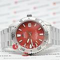 Orient RA‑AC0Q09R — выразительная и универсальная модель из линейки автоматических дайверов, отличающаяся компактным корпусом и ярким дизайном. Диаметр корпуса — 39,9 мм, что делает часы комфортными для ежедневного ношения, в том числе на узком запястье.Циферблат насыщенного красного оттенка с эффектом солнечных лучей оформлен с крупными накладными метками и стрелками, покрытыми люминесцентным покрытиемЛюминесцентное покрытиеПозволяет считывать показания времени в темноте. Производители наносят на стрелки, часовые индексы, безель или поверхность циферблата светонакопительный состав, дающий холодное свечение. — для уверенной читаемости в любое время суток. Односторонний вращающийся безельБезельВнешний ободок, закрепляющий стекло. В спортивных часах так называется поворотное кольцо с делениями на циферблате, выполняет роль таймера – замеряет отрезки времени на шкале. Неподвижный безель – элемент декора. Однонаправленно вращающийся безель на дайверских часах позволяет фиксировать моменты погружения и выныривания на поверхность. позволяет отслеживать время под водой или во время активности.