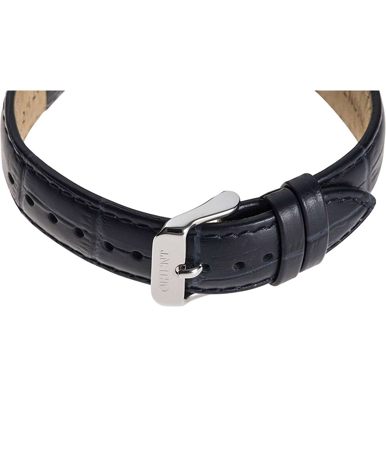 Orient RA-AG0005L — элегантные механические часы с изысканным дизайном и надёжной японской механикой. Корпус диаметром 40,5 мм выполнен из нержавеющей стали, что придаёт модели прочность и долговечность. Синий циферблат украшен открытым балансом (Open Heart), позволяющим наблюдать за работой механизма. Позолоченные стрелки и часовые метки придают часам утончённый стиль. Защиту циферблата обеспечивает минеральное стеклоМинеральное стеклоМинеральное стекло представляет собой искусственно выращенный минерал кварца. Такое стекло отличается особой устойчивостью к повреждениям и царапинам. Уступает по некоторым качествам сапфировому стеклу., устойчивое к царапинам. Внутри установлен автоматический механизм Orient калибра F6T22 с 22 камнями, функцией стоп-секунды и возможностью ручного завода. Запас хода составляет более 40 часов. Часы укомплектованы синим кожаным ремешком с текстурой под аллигатора, а классическая застёжка-пряжка гарантирует удобную фиксацию на запястье. Водонепроницаемость 30 метров защищает модель от случайных брызг и дождя, делая её отличным выбором для повседневного ношения.