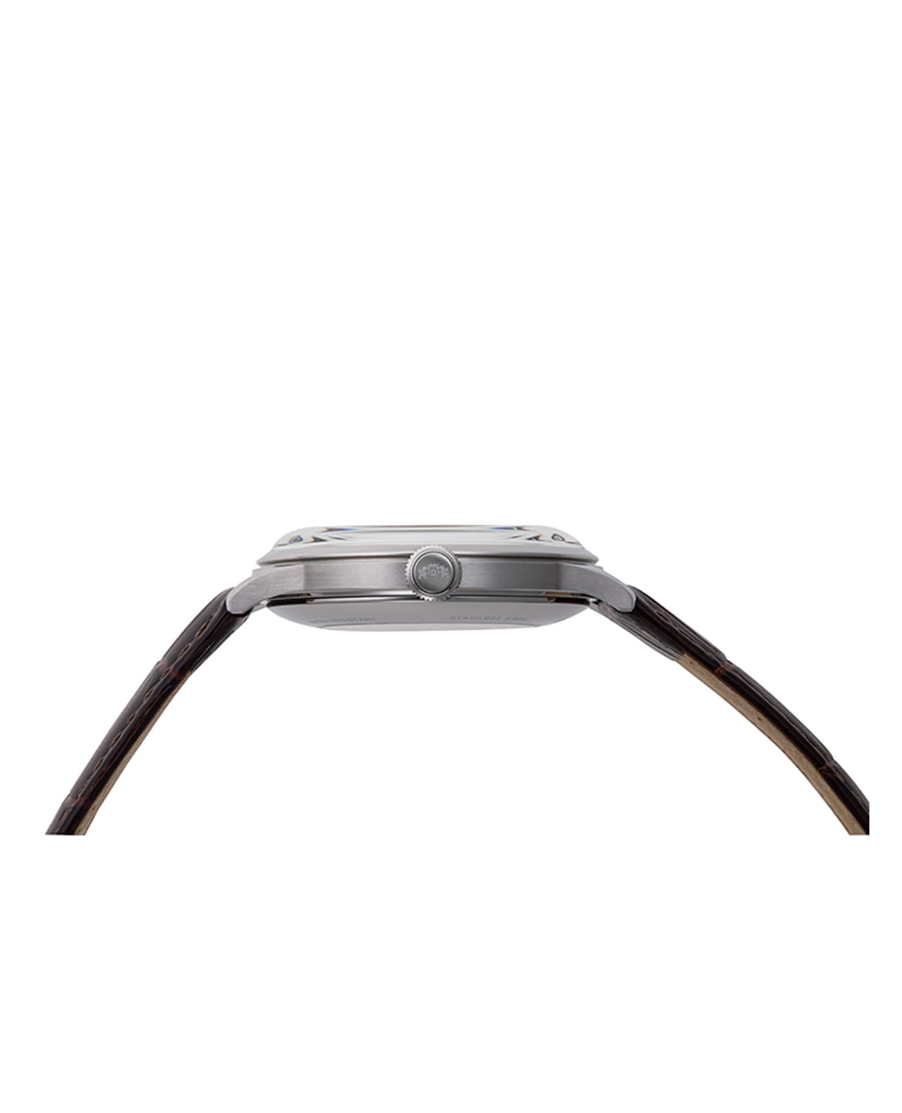 Часы дополнены кожаным ремешком коричневого цвета, который подчеркивает их классический стиль. Водонепроницаемость до 30 метров позволяет использовать их в повседневных условиях, например, при мытье рук или под дождем.