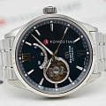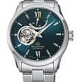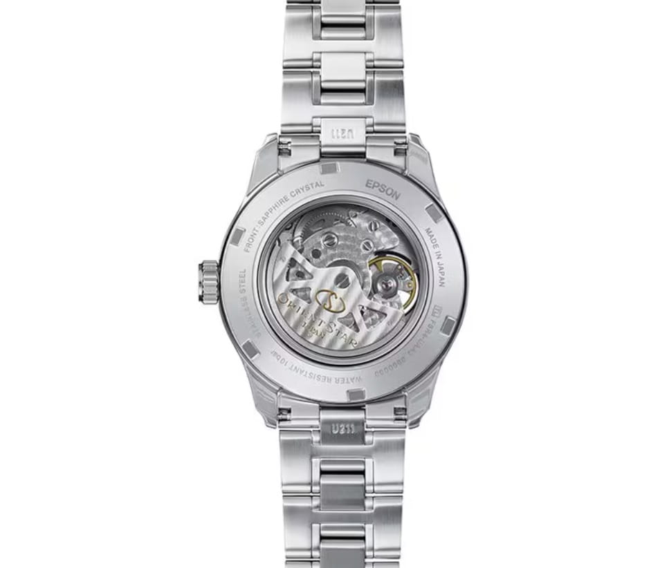 Мужские изысканные часы Orient Contemporary Semi-Skeleton RE-AT0003E — это стильное сочетание современного дизайна и часового мастерства. Корпус из нержавеющей стали с диаметром 39.3 мм защищён сапфировым стекломСапфировое стеклоПрочный и надёжный материал из кристалла сапфира синтетического происхождения, характеризующийся особой твёрдостью и устойчивостью к царапинам и повреждениям. с антибликовым покрытиемАнтибликовое покрытиеСлой оксида металла в 0,13-0,3 микрон, благодаря которому стекло часов не бликует и не отражает свет. Антибликовое покрытие уменьшает отражение света в 10 раз, обеспечивая отличную читаемость показателей циферблата., что обеспечивает отличную видимость и защиту от царапин. Особенностью этой модели является прозрачное окошко на циферблате, через которое можно наблюдать за работой сложного внутреннего механизма. Элегантные часы оснащены калибром F6R42. Элегантный браслет из нержавеющей стали с оснащён раскладной застёжкойРаскладная застёжкаТакой тип застёжки используется только на браслетах из металла. Она никогда не раскрывается полностью, происходит разделение на 2 и более частей. Раскладывающая застёжка снизит вероятность потери часов к минимуму., что обеспечивает удобство и надёжность. Эта изысканная модель имеет люминесцентное покрытиеЛюминесцентное покрытиеПозволяет считывать показания времени в темноте. Производители наносят на стрелки, часовые индексы, безель или поверхность циферблата светонакопительный состав, дающий холодное свечение. на стрелках и метках для отличной читаемости в темноте. Водозащита до 10 ATM позволяет использовать часы не только в повседневной жизни, но и при активности на воде. Orient Contemporary Semi-skeleton RE-AT0003E — это выбор для тех, кто ценит утончённость, стиль и высочайшее качество.