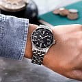 Класс водонепроницаемости этих часов – 200 метров, что дает возможность использовать их при плавании, дайвинге и других активных водных мероприятиях. Часы комплектуются стальным браслетом с раскладной застежкойРаскладная застёжкаТакой тип застёжки используется только на браслетах из металла. Она никогда не раскрывается полностью, происходит разделение на 2 и более частей. Раскладывающая застёжка снизит вероятность потери часов к минимуму., которая обеспечивает надежную фиксацию и комфорт при носке.