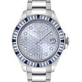 Женские кварцевые часы Philipp Plein Lady Empire PW2FA0125 — это стильное сочетание элегантности и современного дизайна. Изящный корпус выполнен из нержавеющей стали, диаметром 39 мм, что придаст образу женственности и романтизма. Изысканный циферблат с метками в виде точек и римских цифр придает модели особый блеск. Циферблат защищен минеральным стекломМинеральное стеклоМинеральное стекло представляет собой искусственно выращенный минерал кварца. Такое стекло отличается особой устойчивостью к повреждениям и царапинам. Уступает по некоторым качествам сапфировому стеклу., обеспечивающий устойчивость к царапинам и украшен кристаллами. Стрелки с люминесцентным покрытиемЛюминесцентное покрытиеПозволяет считывать показания времени в темноте. Производители наносят на стрелки, часовые индексы, безель или поверхность циферблата светонакопительный состав, дающий холодное свечение.. Окошко даты находится в положении 3 часа. БезельБезельВнешний ободок, закрепляющий стекло. В спортивных часах так называется поворотное кольцо с делениями на циферблате, выполняет роль таймера – замеряет отрезки времени на шкале. Неподвижный безель – элемент декора. Однонаправленно вращающийся безель на дайверских часах позволяет фиксировать моменты погружения и выныривания на поверхность. украшен цирконами. Часы оснащены надежным кварцевым механизмом. Стальной браслет на застёжке-бабочке с кнопкамиЗастёжка "бабочка"Такой вид застёжки дополняется предохранителями, помогающими избежать случайного раскрытия браслета. Обладают изящным исполнением. , гарантирует комфортное и безопасное ношение. Класс водозащиты: 50 метров позволит защитить корпус от случайных брызг или капель дождя. Phlipp Plein — отличный выбор для тех, кто ценит яркость и качество.