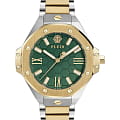 Philipp Plein Plein Lady Royal PWBDA0724 — это женские часы, сочетающие современный стиль и функциональность. Корпус диаметром 39 мм выполнен из нержавеющей стали с двухцветным PVD-покрытиемPVDУльтратонкое покрытие наносится в технике вакуумного напыления, сочетает в себе нитрид титана особой прочности со слоем золота или оксида хрома. Несёт в себе декоративную или защитную функцию., обеспечивающим долговечность и элегантный вид. Минеральное стеклоМинеральное стеклоМинеральное стекло представляет собой искусственно выращенный минерал кварца. Такое стекло отличается особой устойчивостью к повреждениям и царапинам. Уступает по некоторым качествам сапфировому стеклу. защищает циферблат от царапин, сохраняя его безупречное состояние. Зелёный циферблат с шестиугольной текстурой подчёркивает уникальный стиль бренда. Римские цифры и классические стрелки обеспечивают чёткое восприятие времени. Часы оснащены кварцевым механизмом, обеспечивающим точность хода. Водозащита до 5 ATM (50 метров) делает их идеальными для повседневного использования. Браслет из нержавеющей стали с двухцветным PVD-покрытиемPVDУльтратонкое покрытие наносится в технике вакуумного напыления, сочетает в себе нитрид титана особой прочности со слоем золота или оксида хрома. Несёт в себе декоративную или защитную функцию. гармонично сочетается с корпусом. Раскладная застёжкаРаскладная застёжкаТакой тип застёжки используется только на браслетах из металла. Она никогда не раскрывается полностью, происходит разделение на 2 и более частей. Раскладывающая застёжка снизит вероятность потери часов к минимуму. обеспечивает удобство и надёжность ношения. Ширина браслета 16 мм завершает элегантный образ.