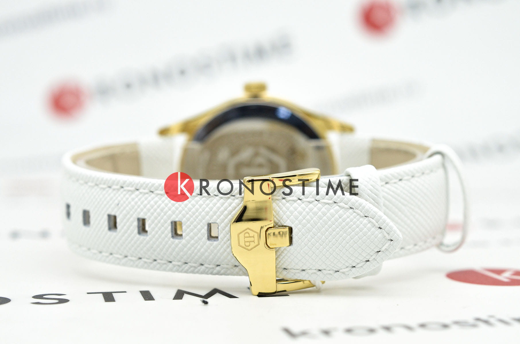 ​​Часы оснащены кварцевым механизмом, обеспечивающим точность хода.​​ ​​Минеральное стеклоМинеральное стеклоМинеральное стекло представляет собой искусственно выращенный минерал кварца. Такое стекло отличается особой устойчивостью к повреждениям и царапинам. Уступает по некоторым качествам сапфировому стеклу. защищает циферблат от повреждений, а люминесцентное покрытиеЛюминесцентное покрытиеПозволяет считывать показания времени в темноте. Производители наносят на стрелки, часовые индексы, безель или поверхность циферблата светонакопительный состав, дающий холодное свечение. на стрелках обеспечивают удобное считывание времени в условиях недостаточной освещённости.​​