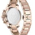 Philipp Plein The $kull Chrono PWWFA0625 - яркие часы-хронографХронографФункция позволяет измерять отрезки времени с особой точностью: часы, минуты, секунды. Верным признаком хронографа является наличие на циферблате 3 дополнительных окошек-счётчиков. в революционном дизайне несомненно добавят вам выразительности и станут главным акцентом вашего стильного образа. Мужские кварцевые часы с высокой точностью. Круглый стальной корпус с PVD-покрытиемPVDУльтратонкое покрытие наносится в технике вакуумного напыления, сочетает в себе нитрид титана особой прочности со слоем золота или оксида хрома. Несёт в себе декоративную или защитную функцию., диаметром 44 мм. Метки в виде штрихов. Минеральное стеклоМинеральное стеклоМинеральное стекло представляет собой искусственно выращенный минерал кварца. Такое стекло отличается особой устойчивостью к повреждениям и царапинам. Уступает по некоторым качествам сапфировому стеклу. защищает циферблат от царапин. Люминесцентное покрытиеЛюминесцентное покрытиеПозволяет считывать показания времени в темноте. Производители наносят на стрелки, часовые индексы, безель или поверхность циферблата светонакопительный состав, дающий холодное свечение. стрелок и меток позволит следить за временем даже в полной темноте. Окошко даты находится в положении 4 часа. Стальной браслет с PVD-покрытиемPVDУльтратонкое покрытие наносится в технике вакуумного напыления, сочетает в себе нитрид титана особой прочности со слоем золота или оксида хрома. Несёт в себе декоративную или защитную функцию. на застёжке-бабочке с кнопкамиЗастёжка "бабочка"Такой вид застёжки дополняется предохранителями, помогающими избежать случайного раскрытия браслета. Обладают изящным исполнением. , обеспечивает комфортное ношение. Граненая заводная головка. Влагозащита: 50 метров, позволит защитить корпус от случайных брызг или капель дождя. Идеальный аксессуар для тех, кто ценит индивидуальность и не боится выделяться из толпы.