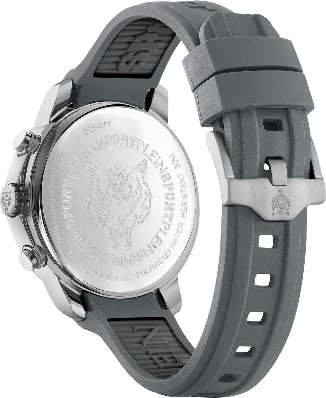 Немецкие мужские кварцевые часы-хронографХронографФункция позволяет измерять отрезки времени с особой точностью: часы, минуты, секунды. Верным признаком хронографа является наличие на циферблате 3 дополнительных окошек-счётчиков. с секундомеромСекундомерСекундоме́р — прибор, способный измерять интервалы времени с точностью до долей секунды. Plein Sport PSCBA0123, кварцевый механизм с высокой точностью. Класс водозащиты: 50 метров, позволит защитить корпус от случайных брызг или капель дождя. Корпус часов изготовлен из стали. Удобный силиконовый ремешок с классической застежкой. Окошко даты находится в положении 4 часов.
