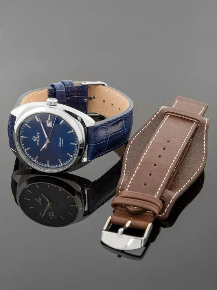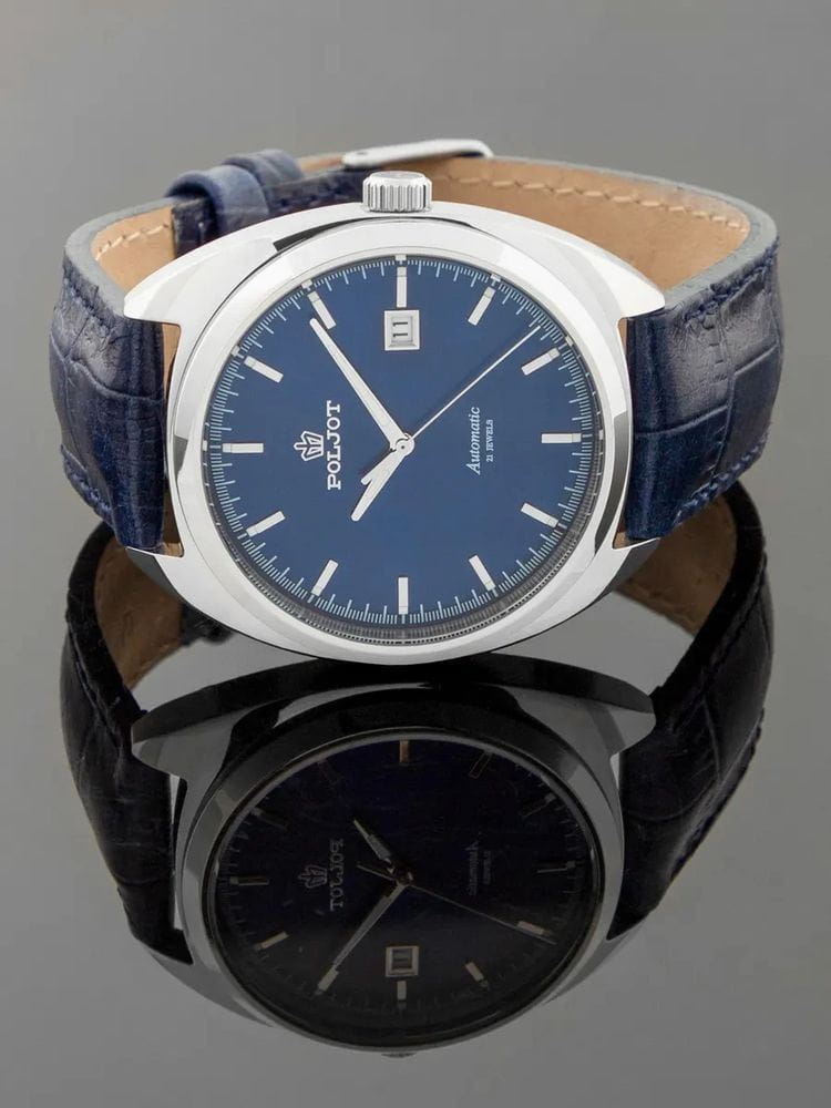 Poljot 8215.241272 — элегантные механические часы с автоподзаводом, сочетающем силу и изысканность. Корпус из нержавеющей стали подчеркивает надёжность и лаконичность дизайна, а глубокий циферблат с серебристыми стрелками придаёт модели благородный акцент. Проверенный японский механизм Miyota 8215 обеспечивает точность хода и долговечность, а плавное движение секундной стрелки подчёркивает качество сборки. Метки и стрелки с люминесцентным покрытиемЛюминесцентное покрытиеПозволяет считывать показания времени в темноте. Производители наносят на стрелки, часовые индексы, безель или поверхность циферблата светонакопительный состав, дающий холодное свечение. обеспечивают отличную читаемость при любом освещении, а окно даты добавляет практичности. Прочное минеральное стеклоМинеральное стеклоМинеральное стекло представляет собой искусственно выращенный минерал кварца. Такое стекло отличается особой устойчивостью к повреждениям и царапинам. Уступает по некоторым качествам сапфировому стеклу. защищает циферблат от царапин, а ремешок из натуральной кожи в тон циферблату завершает утончённый облик модели. Poljot — гармония классики и современной механики, созданная для тех, кто ценит традиции и индивидуальность в каждой детали. В комплекте дополнительный ремешок с напульсником.