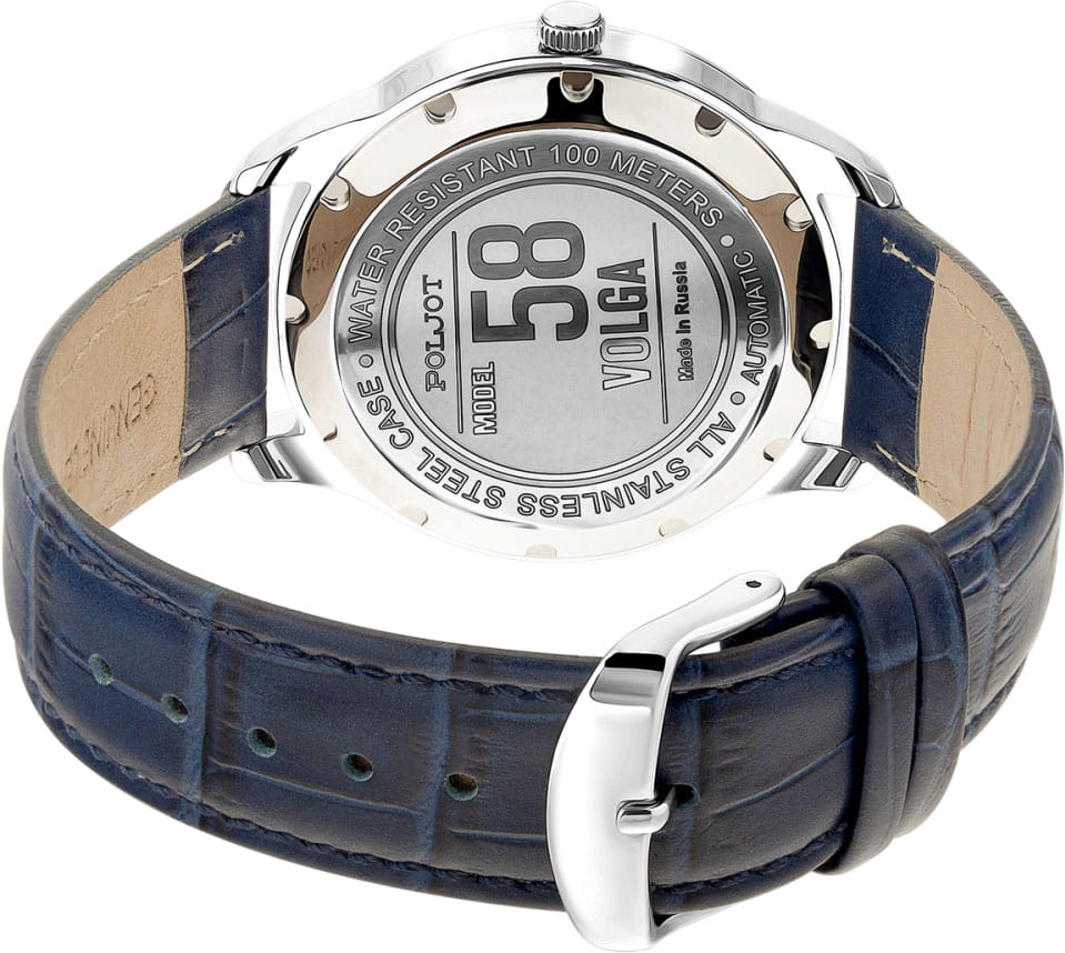 Poljot 8215.581018 — классические механические мужские часы с автоподзаводом, сочетающие традиции отечественного часового производства и лаконичный современный стиль. Корпус из нержавеющей стали подчёркивает надёжность и сдержанную элегантность модели, а глубокий циферблат с минималистичной разметкой, стрелки и метки с люминесцентным покрытиемЛюминесцентное покрытиеПозволяет считывать показания времени в темноте. Производители наносят на стрелки, часовые индексы, безель или поверхность циферблата светонакопительный состав, дающий холодное свечение., аккуратным окном даты и секундным акцентом придаёт образу динамичность. Механизм с автоподзаводом обеспечивает стабильную работу и плавный ход стрелок, подчёркивая инженерную точность исполнения. Прочное минеральное стеклоМинеральное стеклоМинеральное стекло представляет собой искусственно выращенный минерал кварца. Такое стекло отличается особой устойчивостью к повреждениям и царапинам. Уступает по некоторым качествам сапфировому стеклу. защищает циферблат, а ремешок из натуральной кожи с классической текстурой крокодила обеспечивает комфорт и благородный внешний вид. Poljot — воплощение надёжности, традиций и мужской элегантности, созданное для тех, кто ценит качество и уверенность в каждой детали.
