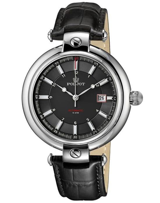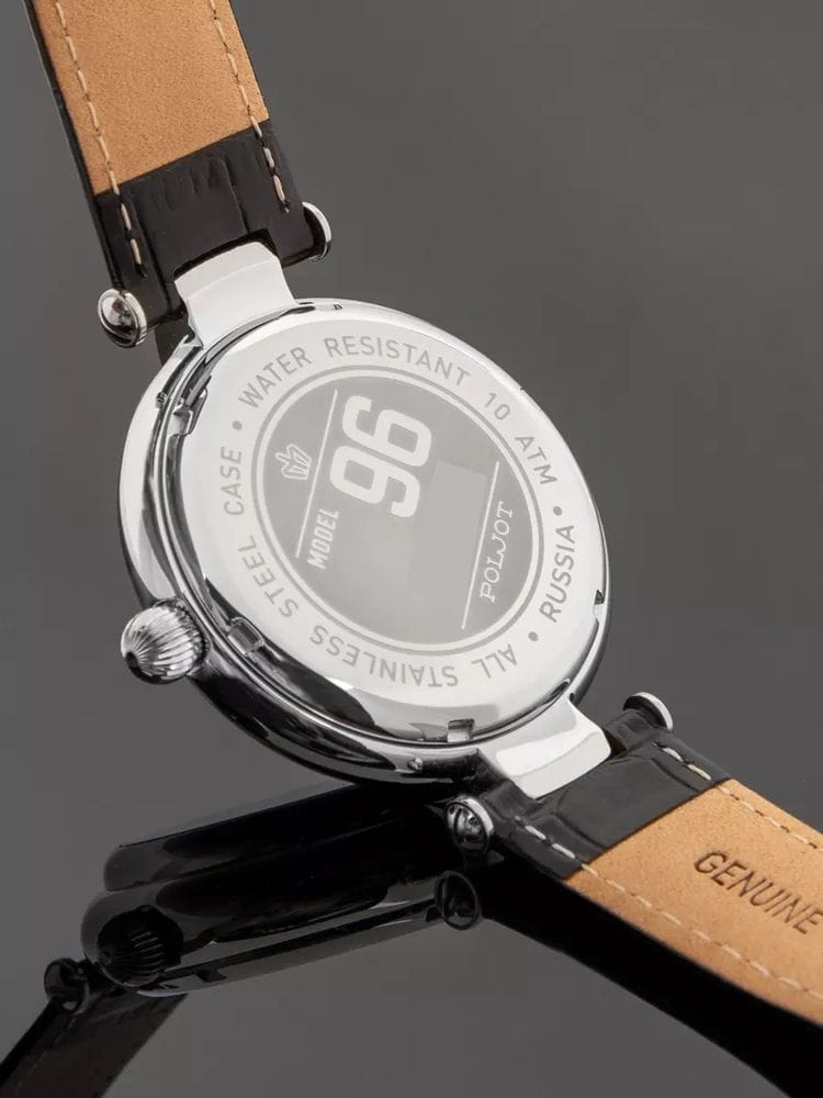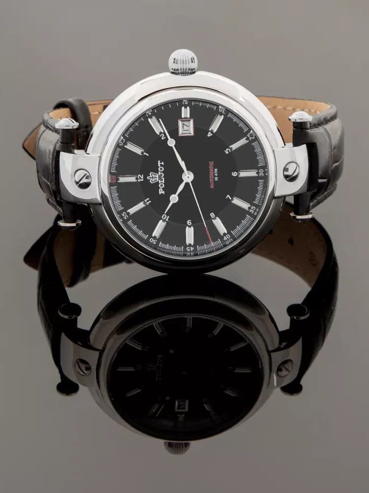 Poljot 8215.961157 “Baikal” — механические мужские часы с автоподзаводом, воплощающие традиции российского часового искусства и строгость классического дизайна. Крупный корпус из нержавеющей стали с характерными ушками придаёт модели мощный и узнаваемый силуэт, а насыщенный циферблат с аккуратной разметкой и окном даты на позиции «3 часов» подчёркивает лаконичность стиля. Механизм с автоподзаводом обеспечивает стабильную работу и плавное движение стрелок. Прочное минеральное стеклоМинеральное стеклоМинеральное стекло представляет собой искусственно выращенный минерал кварца. Такое стекло отличается особой устойчивостью к повреждениям и царапинам. Уступает по некоторым качествам сапфировому стеклу. надёжно защищает циферблат, а ремешок из натуральной кожи гарантирует комфорт и благородный внешний вид. Poljot — это часы для тех, кто ценит надёжность, традиции и спокойную уверенность в каждой детали.