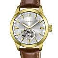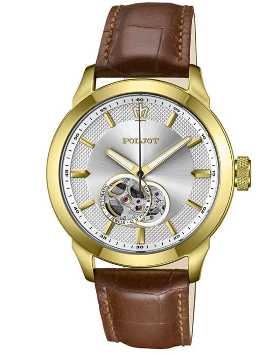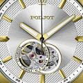 Poljot 82S0.746095  — элегантные механические мужские часы с автоподзаводом, сочетающие традиции отечественного часового производства и классический дизайн. Корпус из нержавеющей стали с тёплым золотистым с PVD-покрытиемPVDУльтратонкое покрытие наносится в технике вакуумного напыления, сочетает в себе нитрид титана особой прочности со слоем золота или оксида хрома. Несёт в себе декоративную или защитную функцию. придаёт модели благородный характер, а серебристый циферблат с чёткой разметкой подчёркивает функциональную строгость стиля. Надёжный механизм с автоподзаводом обеспечивает плавный ход стрелок и стабильную работу. Прочное минеральное стеклоМинеральное стеклоМинеральное стекло представляет собой искусственно выращенный минерал кварца. Такое стекло отличается особой устойчивостью к повреждениям и царапинам. Уступает по некоторым качествам сапфировому стеклу. защищает циферблат от повреждений, а ремешок из натуральной кожи с классической пряжкой добавляет образу утончённости и комфорта. Poljot — это воплощение надёжности, традиции и сдержанной элегантности, идеально подходящее для повседневного делового стиля.