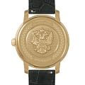 Мужские часы из коллекции «Президент» — это стильный аксессуар, сочетающий в себе элегантность и точность. Модель выполнена в круглой форме с корпусом диаметром 42,9 мм и толщиной 13,7 мм, защищённым сапфировым стекломСапфировое стеклоПрочный и надёжный материал из кристалла сапфира синтетического происхождения, характеризующийся особой твёрдостью и устойчивостью к царапинам и повреждениям., устойчивым к царапинам и механическим повреждениям. Циферблат украшен контуром русской матрешки и инкрустирован кристаллами Swarovski, что придаёт модели особую привлекательность и изысканность. Часы оснащены механизмом с автоподзаводом, обеспечивающим надёжную работу без необходимости частой подзаводки. Задняя крышка с чеканкой Герба России подчёркивает национальную принадлежность и уникальность модели. Кожаный ремешок шириной 20 мм дополнен классической застёжкой, обеспечивая комфорт и элегантный образ. Водонепроницаемость позволяет использовать модель в повседневных условиях — при мытье рук или под лёгким дождём. Эти часы станут универсальным аксессуаром для тех, кто ценит сочетание стиля, функциональности и российского мастерства — идеальный выбор для уверенных в себе мужчин, следящих за своим имиджем и предпочитающих выделяться.