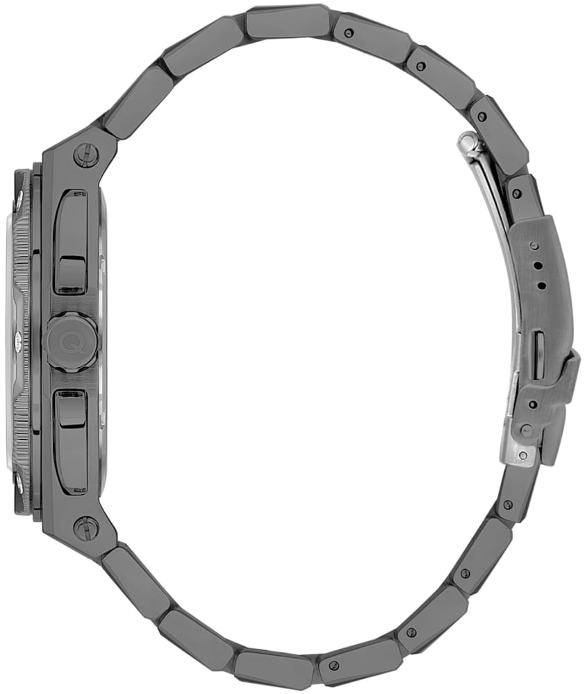 Мужские кварцевые часы Quantum HNG1011.050 из коллекции Hunter — надёжный и функциональный аксессуар в стальном исполнении. Корпус круглый, из нержавеющей стали, диаметром 46 мм. Циферблат — чёрный с функцией хронографаХронографФункция позволяет измерять отрезки времени с особой точностью: часы, минуты, секунды. Верным признаком хронографа является наличие на циферблате 3 дополнительных окошек-счётчиков. и окошком даты. Стекло — минеральноеМинеральное стеклоМинеральное стекло представляет собой искусственно выращенный минерал кварца. Такое стекло отличается особой устойчивостью к повреждениям и царапинам. Уступает по некоторым качествам сапфировому стеклу. с антибликовым покрытием. Механизм — японский кварцевый Seiko. Водонепроницаемость 100 м. Браслет — стальной на раскладной застёжкеРаскладная застёжкаТакой тип застёжки используется только на браслетах из металла. Она никогда не раскрывается полностью, происходит разделение на 2 и более частей. Раскладывающая застёжка снизит вероятность потери часов к минимуму.. Идеальный выбор для тех, кто ценит турецкий дизайн и повседневную практичность.