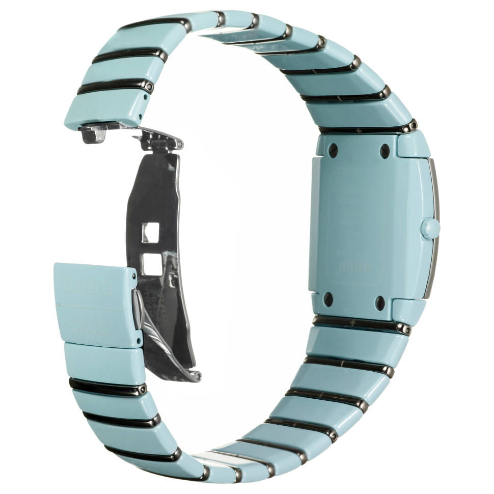 Часы Rado Sintra R13666919, произведение искусства и технологическое чудо, станут прекрасным дополнением к коллекции. Эти швейцарские часы оснащены кварцевым механизмом с указателем даты и тремя стрелками, заключенным в корпус из нержавеющей стали. Браслет с раскладной застёжкойРаскладная застёжкаТакой тип застёжки используется только на браслетах из металла. Она никогда не раскрывается полностью, происходит разделение на 2 и более частей. Раскладывающая застёжка снизит вероятность потери часов к минимуму.. изготовлен из высокотехнологичной керамикиВысокотехнологичная керамикаИнновационный запатентованный Rado материал с гладкой или матовой поверхностью. Керамика за счёт кристаллической структуры обладает повышенной устойчивостью от возникновения царапин. Материал способен принимать температуру тела человека, обеспечивая невероятный комфорт при ношении.. Корпус украшен 48 бриллиантами, циферблат 4 бриллианта, браслет 102 бриллианта. Сапфировое стеклоСапфировое стеклоПрочный и надёжный материал из кристалла сапфира синтетического происхождения, характеризующийся особой твёрдостью и устойчивостью к царапинам и повреждениям. устойчивое к появлению царапин, обладающее высокой прозрачностью. Класс водозащиты: 30 метров, позволит защитить корпус от случайных брызг или капель дождя.
