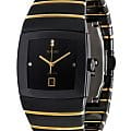 Часы Rado Sintra R13724711, произведение искусства и технологическое чудо, станут прекрасным дополнением к коллекции любого мужчины. Эти швейцарские часы оснащены кварцевым механизмом с указателем даты и тремя стрелками, заключенным в бочкообразный корпус из высокотехнологичной керамикиВысокотехнологичная керамикаИнновационный запатентованный Rado материал с гладкой или матовой поверхностью. Керамика за счёт кристаллической структуры обладает повышенной устойчивостью от возникновения царапин. Материал способен принимать температуру тела человека, обеспечивая невероятный комфорт при ношении.. Сапфировое стеклоСапфировое стеклоПрочный и надёжный материал из кристалла сапфира синтетического происхождения, характеризующийся особой твёрдостью и устойчивостью к царапинам и повреждениям. устойчивое к появлению царапин, обладающее высокой прозрачностью. Класс водозащиты: 30 метров, позволит защитить корпус от случайных брызг или капель дождя. Циферблат декорирован 4 бриллиантами, узкие звенья браслета - накладки из 18-каратного золота18-каратное золотоОбозначение по каратной системе пробирования, оно показывает, сколько драгоценного металла содержится в изделии. 18 карат - в составе 75% чистого золота, соответствует 750 пробе.