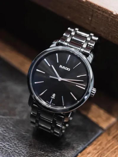 Мужские швейцарские часы Rado Coupole R14065907. Корпус и браслет часов изготовлены из высокотехнологичной плазменной керамикиВысокотехнологичная плазменная керамикаИнновационный материал, технология запатентована. Выплавление керамики осуществляется в печи при 20 000 °C, белоснежный материал под воздействием ультравысокой температуры приобретает уникальный блеск, присущий металлам.. Сапфировое стеклоСапфировое стеклоПрочный и надёжный материал из кристалла сапфира синтетического происхождения, характеризующийся особой твёрдостью и устойчивостью к царапинам и повреждениям. устойчивое к мелким механическим повреждениям. Браслет на застёжке «бабочке» с кнопкамиЗастёжка "бабочка"Такой вид застёжки дополняется предохранителями, помогающими избежать случайного раскрытия браслета. Обладают изящным исполнением. . Класс водозащиты: 50 метров, позволит защитить корпус от случайных брызг или капель дождя. Отображение даты в положении «6 часов».