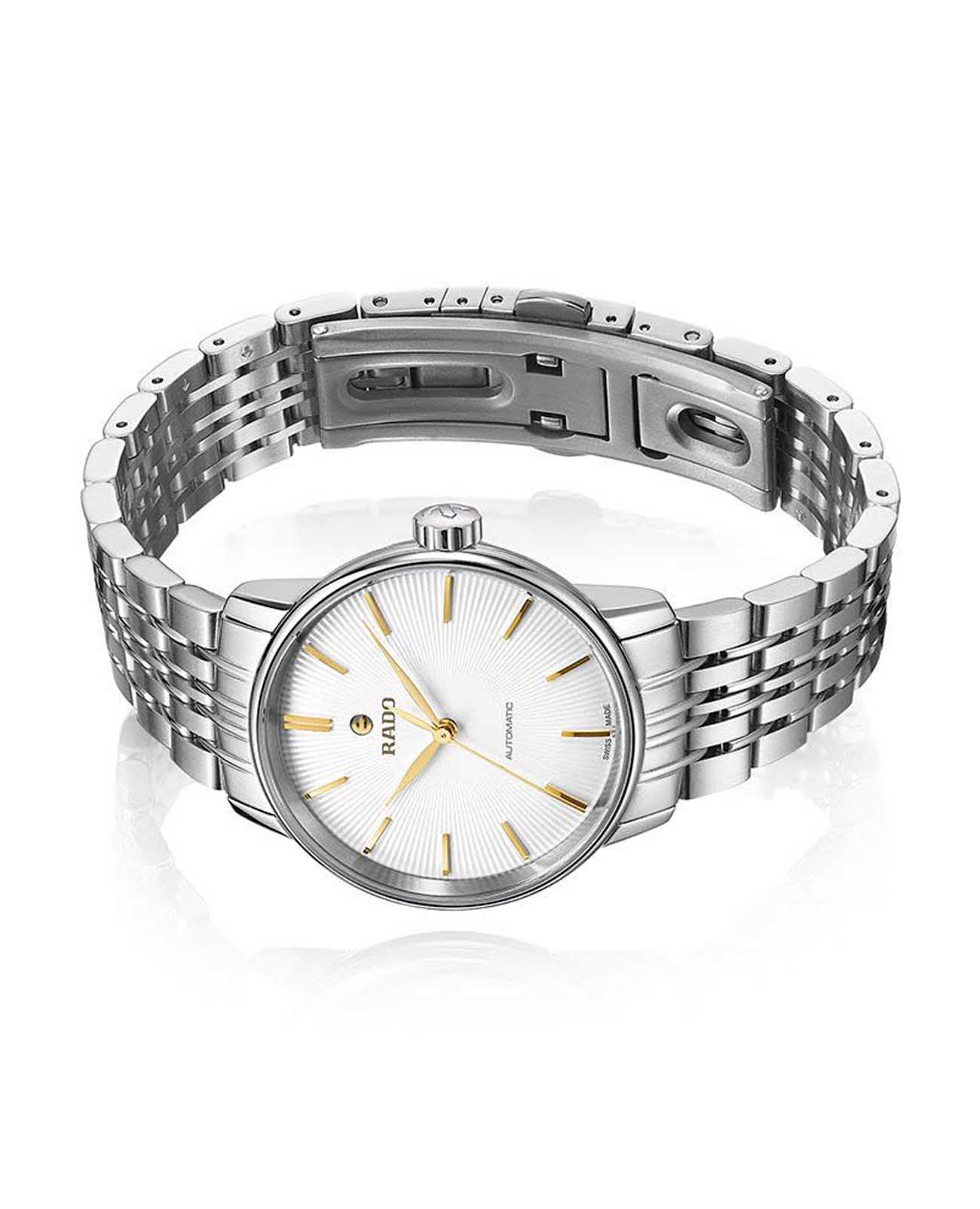 Женские механические швейцарские часы с автоподзаводом Rado Coupole Classic Automatic R22862024. Сапфировое стеклоСапфировое стеклоПрочный и надёжный материал из кристалла сапфира синтетического происхождения, характеризующийся особой твёрдостью и устойчивостью к царапинам и повреждениям. устойчивое к мелким механическим повреждениям. Корпус часов изготовлен из нержавеющей стали. Класс водозащиты: 50 метров, позволит защитить корпус от случайных брызг или капель дождя. Стальной браслет на раскладной застёжкеРаскладная застёжкаТакой тип застёжки используется только на браслетах из металла. Она никогда не раскрывается полностью, происходит разделение на 2 и более частей. Раскладывающая застёжка снизит вероятность потери часов к минимуму..