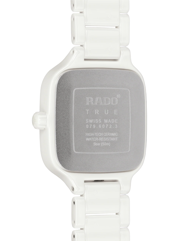 Женские кварцевые швейцарские часы Rado True Square Diamonds R27072902 являют собой совершенство стиля и технологий. Оригинальная модель квадратной формы Rado Square имеет прочный корпус моноблочной конструкции из высокотехнологичной плазменной керамикиВысокотехнологичная плазменная керамикаИнновационный материал, технология запатентована. Выплавление керамики осуществляется в печи при 20 000 °C, белоснежный материал под воздействием ультравысокой температуры приобретает уникальный блеск, присущий металлам..Стрелки и метки дополнены яркой люминесцентной подсветкойЛюминесцентное покрытиеПозволяет считывать показания времени в темноте. Производители наносят на стрелки, часовые индексы, безель или поверхность циферблата светонакопительный состав, дающий холодное свечение.. Сапфировое стекло на 100% устойчиво к царапинам.