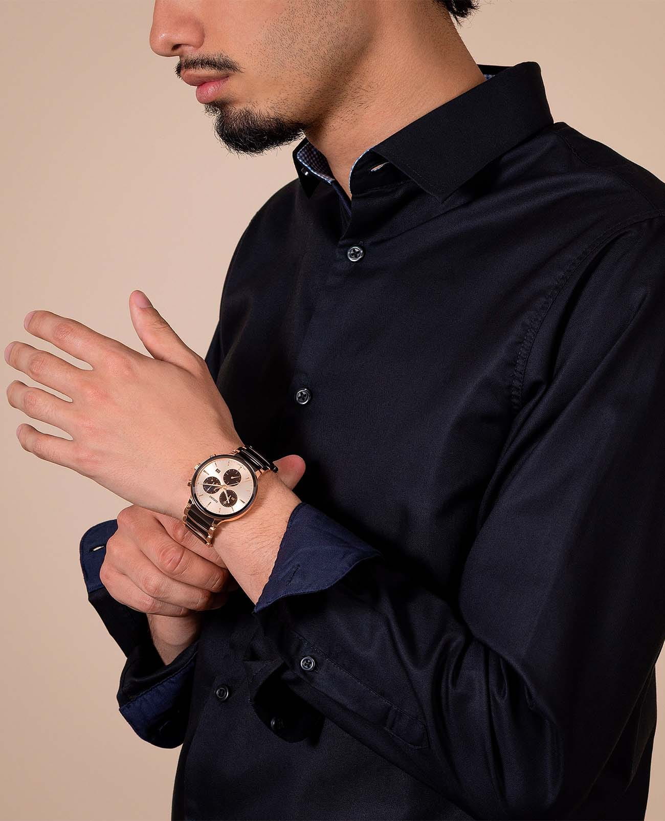 Мужские кварцевые часы Rado Centrix Chronograph — это гармоничное сочетание художественного дизайна и технического совершенства. Корпус диаметром 41 мм и толщиной 11,4 мм выполнен из нержавеющей стали с PVD-покрытиемPVDУльтратонкое покрытие наносится в технике вакуумного напыления, сочетает в себе нитрид титана особой прочности со слоем золота или оксида хрома. Несёт в себе декоративную или защитную функцию. розового золота. Циферблат цвета шампань с эффектом «солнечные лучи» оформлен розовыми индексами с люминесцентным покрытиемЛюминесцентное покрытиеПозволяет считывать показания времени в темноте. Производители наносят на стрелки, часовые индексы, безель или поверхность циферблата светонакопительный состав, дающий холодное свечение. Super-Luminova®, обеспечивающим отличную читаемость в темноте. Циферблат защищён выпуклым сапфировым стекломСапфировое стеклоПрочный и надёжный материал из кристалла сапфира синтетического происхождения, характеризующийся особой твёрдостью и устойчивостью к царапинам и повреждениям. с антибликовым покрытиемАнтибликовое покрытиеСлой оксида металла в 0,13-0,3 микрон, благодаря которому стекло часов не бликует и не отражает свет. Антибликовое покрытие уменьшает отражение света в 10 раз, обеспечивая отличную читаемость показателей циферблата. с обеих сторон. Механизм — швейцарский кварцевый с функцией хронографаХронографФункция позволяет измерять отрезки времени с особой точностью: часы, минуты, секунды. Верным признаком хронографа является наличие на циферблате 3 дополнительных окошек-счётчиков., оснащённый 22 камнями и технологиями Precidrive и Heavydrive, обеспечивающими точность хода ±10 секунд в год. Циферблат включает три субциферблата: 30-минутный счётчик, индикатор одной десятой секунды и малые секунды в положении 6 часов. Окошко даты расположено в положении 4 часов. Часы оснащены браслетом из полированной нержавеющей стали с вставками из высокотехнологичной керамикиВысокотехнологичная керамикаИнновационный запатентованный Rado материал с гладкой или матовой поверхностью. Керамика за счёт кристаллической структуры обладает повышенной устойчивостью от возникновения царапин. Материал способен принимать температуру тела человека, обеспечивая невероятный комфорт при ношении. коричневого цвета и застёжка «бабочка» с кнопкамиЗастёжка "бабочка"Такой вид застёжки дополняется предохранителями, помогающими избежать случайного раскрытия браслета. Обладают изящным исполнением. из матовой стали. Водонепроницаемость 50 м позволяет использовать часы в повседневных условиях. Гарантия — 5 лет. Идеальный выбор для тех, кто ценит точность, стиль и швейцарское качество.