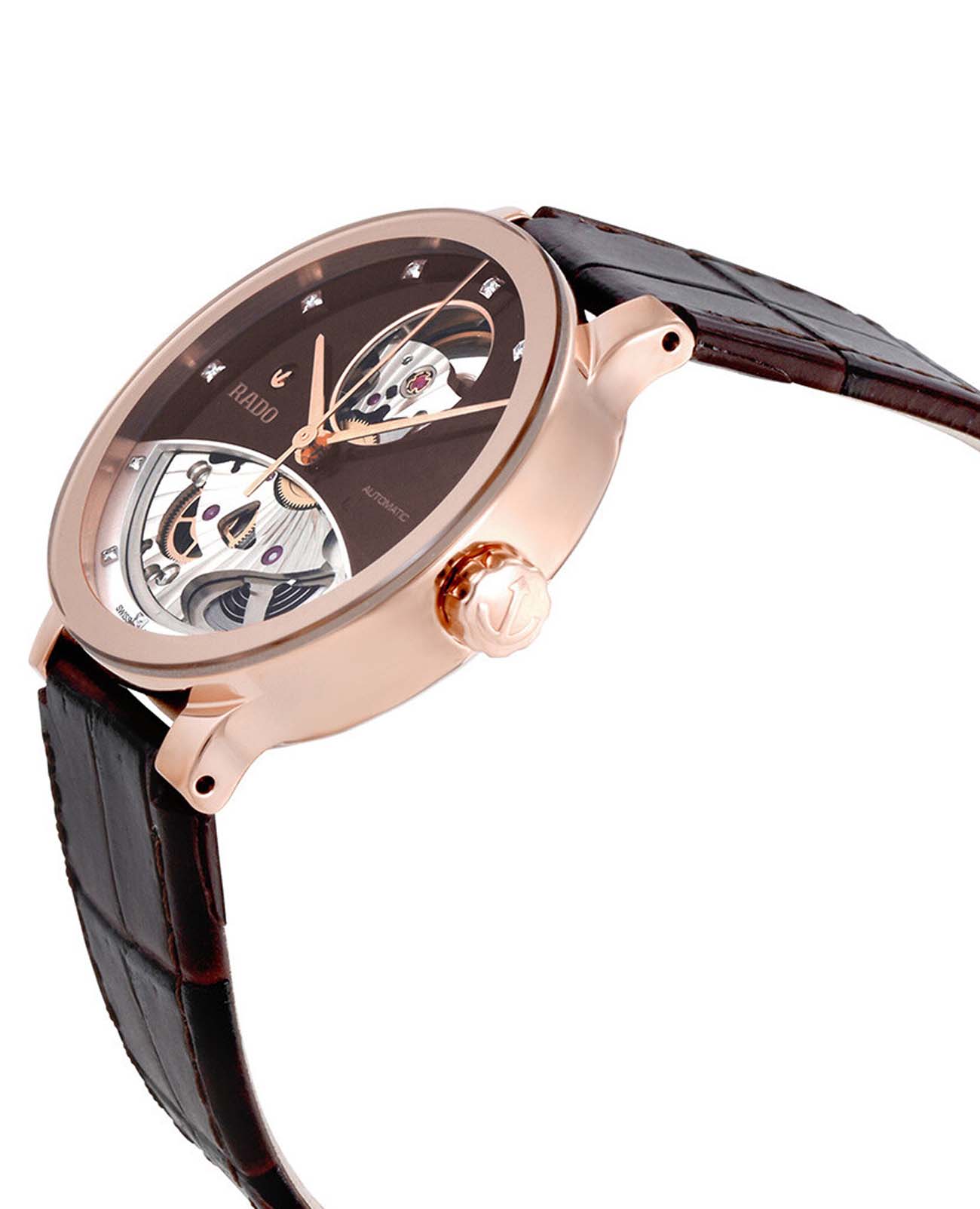 Швейцарские механические часы-скелетоны с автоподзаводом Rado Centrix Automatic Diamonds Open Heart R30248715. Сапфировое стеклоСапфировое стеклоПрочный и надёжный материал из кристалла сапфира синтетического происхождения, характеризующийся особой твёрдостью и устойчивостью к царапинам и повреждениям. устойчивое к мелким механическим повреждениям. Корпус часов изготовлен из нержавеющей стали с PVD-покрытиемPVDУльтратонкое покрытие наносится в технике вакуумного напыления, сочетает в себе нитрид титана особой прочности со слоем золота или оксида хрома. Несёт в себе декоративную или защитную функцию.. Класс водозащиты: 30 метров, позволит защитить корпус от случайных брызг или капель дождя. Кожаный ремешок на раскладной застёжкеРаскладная застёжкаТакой тип застёжки используется только на браслетах из металла. Она никогда не раскрывается полностью, происходит разделение на 2 и более частей. Раскладывающая застёжка снизит вероятность потери часов к минимуму..