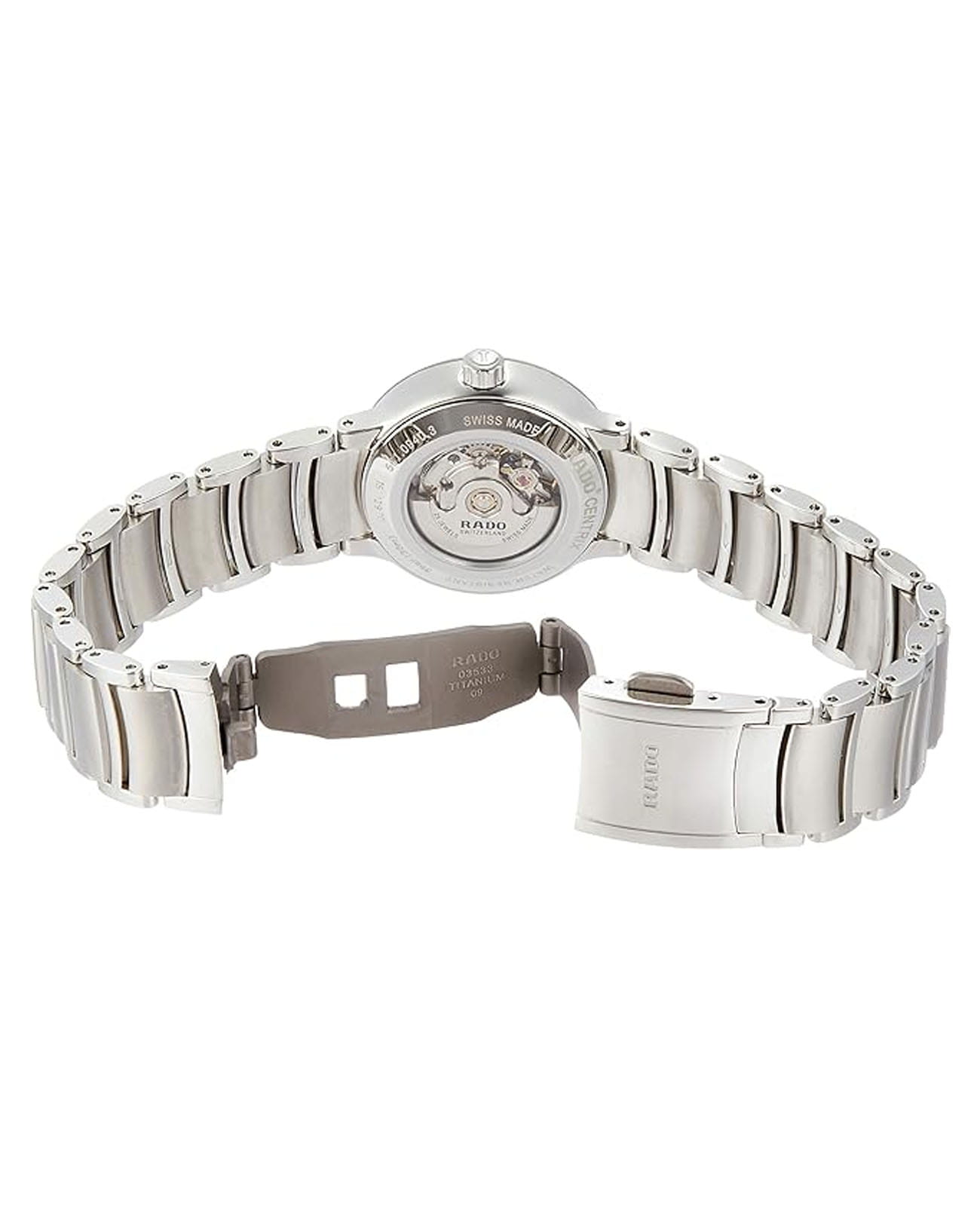 Швейцарские женские механические часы с автоподзаводом Rado Centrix R30940013. Сапфировое стеклоСапфировое стеклоПрочный и надёжный материал из кристалла сапфира синтетического происхождения, характеризующийся особой твёрдостью и устойчивостью к царапинам и повреждениям. устойчивое к появлению царапин, обладающее высокой прозрачностью. Корпус часов изготовлен из нержавеющей стали. Окошко даты находится в положении 3 часа. Класс водозащиты: 30 метров, позволит защитить корпус от случайных брызг или капель дождя. Браслет из высокотехнологичной керамикиВысокотехнологичная керамикаИнновационный запатентованный Rado материал с гладкой или матовой поверхностью. Керамика за счёт кристаллической структуры обладает повышенной устойчивостью от возникновения царапин. Материал способен принимать температуру тела человека, обеспечивая невероятный комфорт при ношении. и нержавеющей стали на раскладной застёжкеРаскладная застёжкаТакой тип застёжки используется только на браслетах из металла. Она никогда не раскрывается полностью, происходит разделение на 2 и более частей. Раскладывающая застёжка снизит вероятность потери часов к минимуму..
