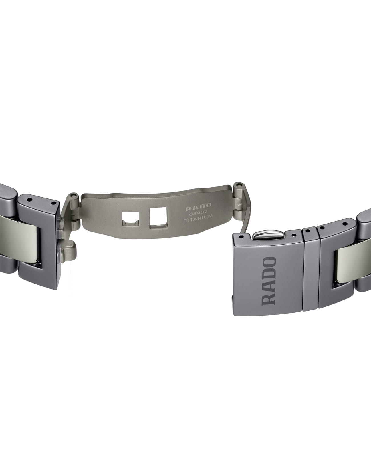 Мужские механические швейцарские часы-хронографХронографФункция позволяет измерять отрезки времени с особой точностью: часы, минуты, секунды. Верным признаком хронографа является наличие на циферблате 3 дополнительных окошек-счётчиков. с автоподзаводом Rado Hyperchrome Limited Edition Chronograph Automatic R32022152. Сапфировое стеклоСапфировое стеклоПрочный и надёжный материал из кристалла сапфира синтетического происхождения, характеризующийся особой твёрдостью и устойчивостью к царапинам и повреждениям. устойчивое к мелким механическим повреждениям. Корпус часов изготовлен из высокотехнологичной керамикиВысокотехнологичная керамикаИнновационный запатентованный Rado материал с гладкой или матовой поверхностью. Керамика за счёт кристаллической структуры обладает повышенной устойчивостью от возникновения царапин. Материал способен принимать температуру тела человека, обеспечивая невероятный комфорт при ношении.. БезельБезельВнешний ободок, закрепляющий стекло. В спортивных часах так называется поворотное кольцо с делениями на циферблате, выполняет роль таймера – замеряет отрезки времени на шкале. Неподвижный безель – элемент декора. Однонаправленно вращающийся безель на дайверских часах позволяет фиксировать моменты погружения и выныривания на поверхность. со шкалой тахиметраТахиметрРазмеченная шкала, располагается на ободке или безеле часов. Тахиметр позволяет рассчитать скорость на определённом участке пути, расстояние измеряется в километрах или милях.. Окошко даты находится в положении между 4 и 5 часами. Стрелки с люминесцентным покрытиемЛюминесцентное покрытиеПозволяет считывать показания времени в темноте. Производители наносят на стрелки, часовые индексы, безель или поверхность циферблата светонакопительный состав, дающий холодное свечение.. Класс водозащиты: 100 метров, позволит плавать, нырять и заниматься другими водными видами спорта. Браслет из высокотехнологичной керамикиВысокотехнологичная керамикаИнновационный запатентованный Rado материал с гладкой или матовой поверхностью. Керамика за счёт кристаллической структуры обладает повышенной устойчивостью от возникновения царапин. Материал способен принимать температуру тела человека, обеспечивая невероятный комфорт при ношении. на раскладной застёжкеРаскладная застёжкаТакой тип застёжки используется только на браслетах из металла. Она никогда не раскрывается полностью, происходит разделение на 2 и более частей. Раскладывающая застёжка снизит вероятность потери часов к минимуму..