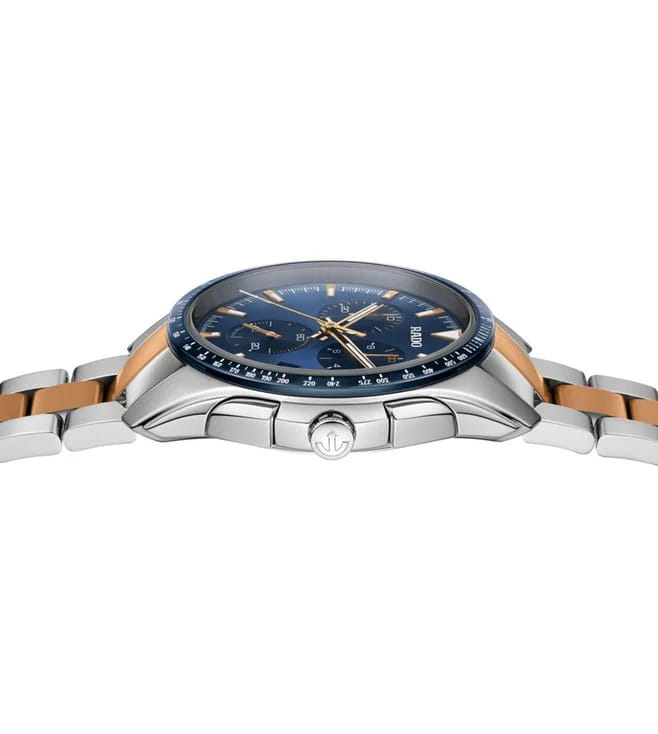 Мужские наручные часы-хронографХронографФункция позволяет измерять отрезки времени с особой точностью: часы, минуты, секунды. Верным признаком хронографа является наличие на циферблате 3 дополнительных окошек-счётчиков. Rado Hyperchrome Chronograph. Корпус часов изготовлен из нержавеющей стали. Стальной браслет с частичным PVD-покрытиемPVDУльтратонкое покрытие наносится в технике вакуумного напыления, сочетает в себе нитрид титана особой прочности со слоем золота или оксида хрома. Несёт в себе декоративную или защитную функцию. на застёжкой «бабочка» с кнопкамиЗастёжка "бабочка"Такой вид застёжки дополняется предохранителями, помогающими избежать случайного раскрытия браслета. Обладают изящным исполнением. . БезельБезельВнешний ободок, закрепляющий стекло. В спортивных часах так называется поворотное кольцо с делениями на циферблате, выполняет роль таймера – замеряет отрезки времени на шкале. Неподвижный безель – элемент декора. Однонаправленно вращающийся безель на дайверских часах позволяет фиксировать моменты погружения и выныривания на поверхность. со шкалой тахиметраТахиметрРазмеченная шкала, располагается на ободке или безеле часов. Тахиметр позволяет рассчитать скорость на определённом участке пути, расстояние измеряется в километрах или милях.. Окошко даты находится в положении 4 часа. Стрелки и метки с люминесцентным покрытиемЛюминесцентное покрытиеПозволяет считывать показания времени в темноте. Производители наносят на стрелки, часовые индексы, безель или поверхность циферблата светонакопительный состав, дающий холодное свечение.. Сапфировое стеклоСапфировое стеклоПрочный и надёжный материал из кристалла сапфира синтетического происхождения, характеризующийся особой твёрдостью и устойчивостью к царапинам и повреждениям. с антибликовым покрытиемАнтибликовое покрытиеСлой оксида металла в 0,13-0,3 микрон, благодаря которому стекло часов не бликует и не отражает свет. Антибликовое покрытие уменьшает отражение света в 10 раз, обеспечивая отличную читаемость показателей циферблата. устойчивое к мелким механическим повреждениям. Класс водозащиты: 100 метров, позволит плавать, нырять и заниматься другими водными видами спорта.