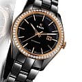 Женские механические швейцарские часы с автоподзаводом Rado Hyperchrome Automatic Diamonds R32526152. Сапфировое стеклоСапфировое стеклоПрочный и надёжный материал из кристалла сапфира синтетического происхождения, характеризующийся особой твёрдостью и устойчивостью к царапинам и повреждениям. устойчивое к мелким механическим повреждениям. Корпус часов изготовлен из нержавеющей стали с PVD-покрытиемPVDУльтратонкое покрытие наносится в технике вакуумного напыления, сочетает в себе нитрид титана особой прочности со слоем золота или оксида хрома. Несёт в себе декоративную или защитную функцию. и керамики. БезельБезельВнешний ободок, закрепляющий стекло. В спортивных часах так называется поворотное кольцо с делениями на циферблате, выполняет роль таймера – замеряет отрезки времени на шкале. Неподвижный безель – элемент декора. Однонаправленно вращающийся безель на дайверских часах позволяет фиксировать моменты погружения и выныривания на поверхность. из керамики украшен бриллиантами. Окошко даты находится в положении 3 часа. Стрелки с люминесцентным покрытиемЛюминесцентное покрытиеПозволяет считывать показания времени в темноте. Производители наносят на стрелки, часовые индексы, безель или поверхность циферблата светонакопительный состав, дающий холодное свечение.. Класс водозащиты: 50 метров, позволит защитить корпус от случайных брызг или капель дождя. Браслет из высокотехнологичной керамикиВысокотехнологичная керамикаИнновационный запатентованный Rado материал с гладкой или матовой поверхностью. Керамика за счёт кристаллической структуры обладает повышенной устойчивостью от возникновения царапин. Материал способен принимать температуру тела человека, обеспечивая невероятный комфорт при ношении. на раскладной застёжкеРаскладная застёжкаТакой тип застёжки используется только на браслетах из металла. Она никогда не раскрывается полностью, происходит разделение на 2 и более частей. Раскладывающая застёжка снизит вероятность потери часов к минимуму..