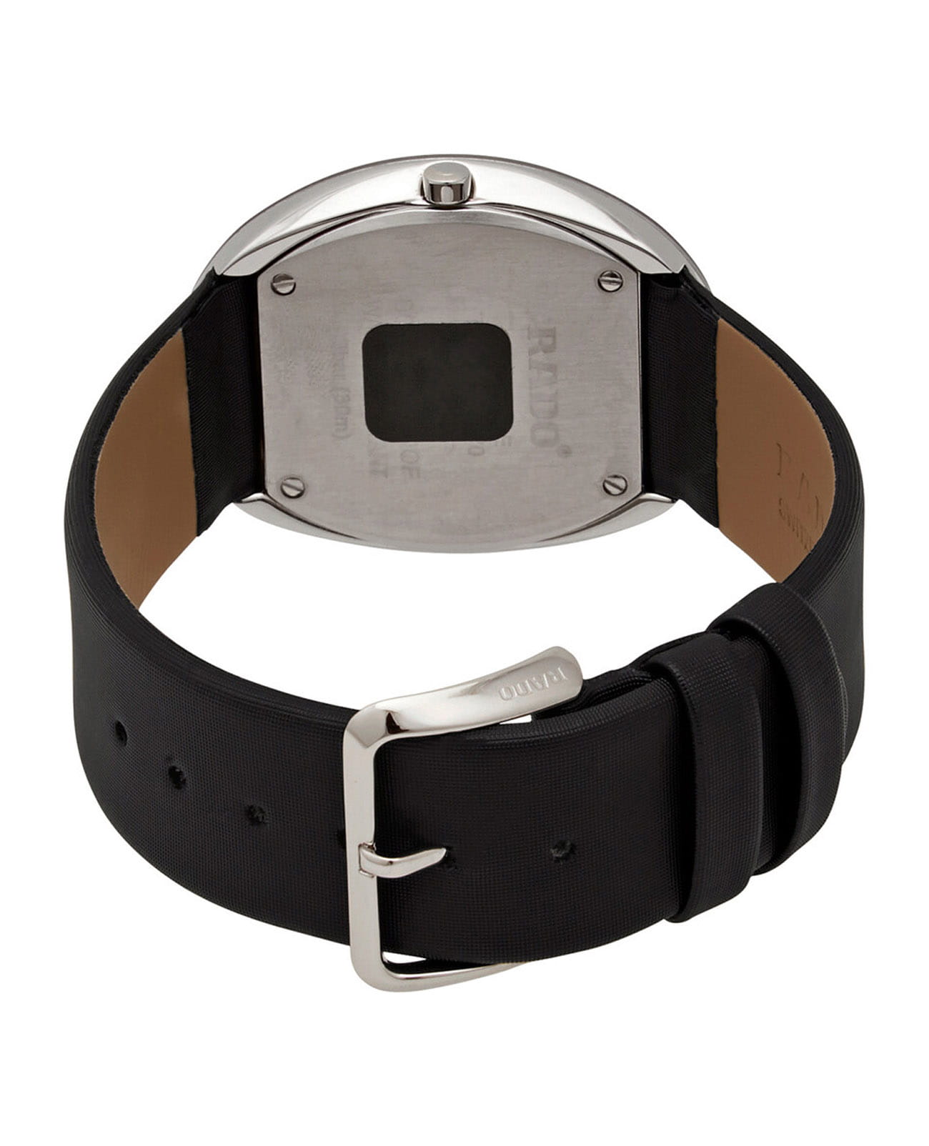 Швейцарские женские Rado Esenza R53414706, кварцевый механизм с высокой точностью. Сапфировое стеклоСапфировое стеклоПрочный и надёжный материал из кристалла сапфира синтетического происхождения, характеризующийся особой твёрдостью и устойчивостью к царапинам и повреждениям. устойчивое к появлению царапин, обладающее высокой прозрачностью. Корпус часов изготовлен из нержавеющей стали. Циферблат украшен бриллиантами. Класс водозащиты: 30 метров, позволит защитить корпус от случайных брызг или капель дождя. Кожаный браслет на стандартной застежке.