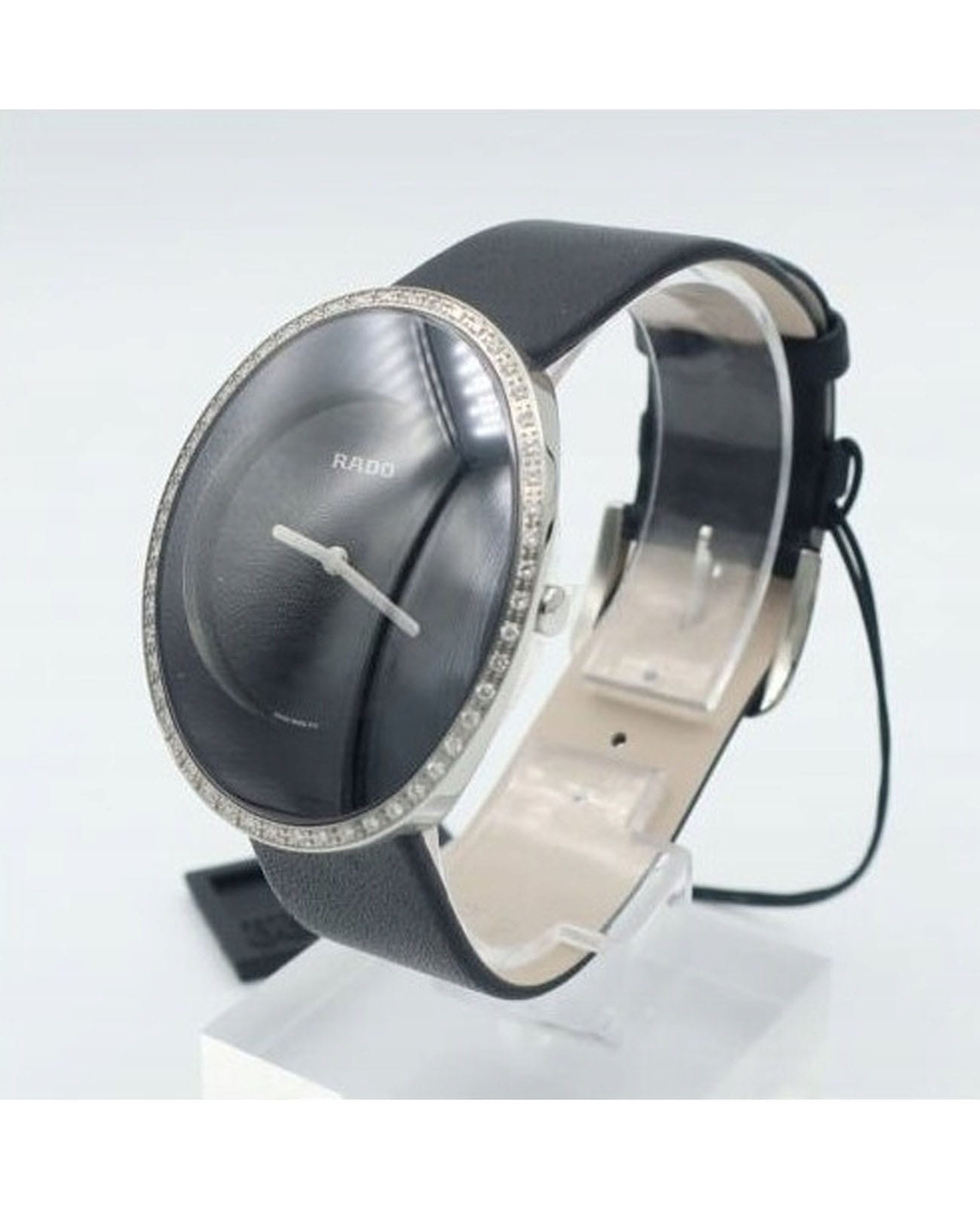 Швейцарские женские Rado Esenza R53761155, кварцевый механизм с высокой точностью. Сапфировое стеклоСапфировое стеклоПрочный и надёжный материал из кристалла сапфира синтетического происхождения, характеризующийся особой твёрдостью и устойчивостью к царапинам и повреждениям. устойчивое к появлению царапин, обладающее высокой прозрачностью. Корпус часов изготовлен из нержавеющей стали. БезельБезельВнешний ободок, закрепляющий стекло. В спортивных часах так называется поворотное кольцо с делениями на циферблате, выполняет роль таймера – замеряет отрезки времени на шкале. Неподвижный безель – элемент декора. Однонаправленно вращающийся безель на дайверских часах позволяет фиксировать моменты погружения и выныривания на поверхность. украшен бриллиантами. Класс водозащиты: 30 метров, позволит защитить корпус от случайных брызг или капель дождя. Кожаный браслет на стандартной застежке.