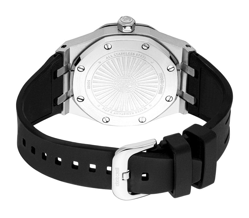 ROBERTO CAVALLI Uomo Ottagono RC5G102P0015 — стильные итальянские часы сочетающие в себе элегантность и современный функционал. Корпус диаметром 42 мм выполнен из нержавеющей стали, толщина корпуса составляет 12 мм, что придает модели выразительный внешний вид и надежную защиту от внешних воздействий. Циферблат, искусно оформленный фирменными элементами Roberto Cavalli, притягивает взгляд и подчеркивает ваш безупречный вкус.