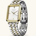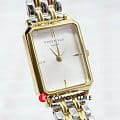 Женские кварцевые часы. Центральные часовая, минутная и секундная стрелки. Серебристый циферблат. Восьмиугольный корпус выполнен из металла с IP покрытием цвета желтого золота. Размер корпуса составляет 19,5 х 24 мм, толщина 7 мм. Стальной браслет с частичным покрытием, браслетная застежка. Прочное минеральное стекло устойчивое к мелким механическим повреждениям. Водостойкость WR 30 (брызги).