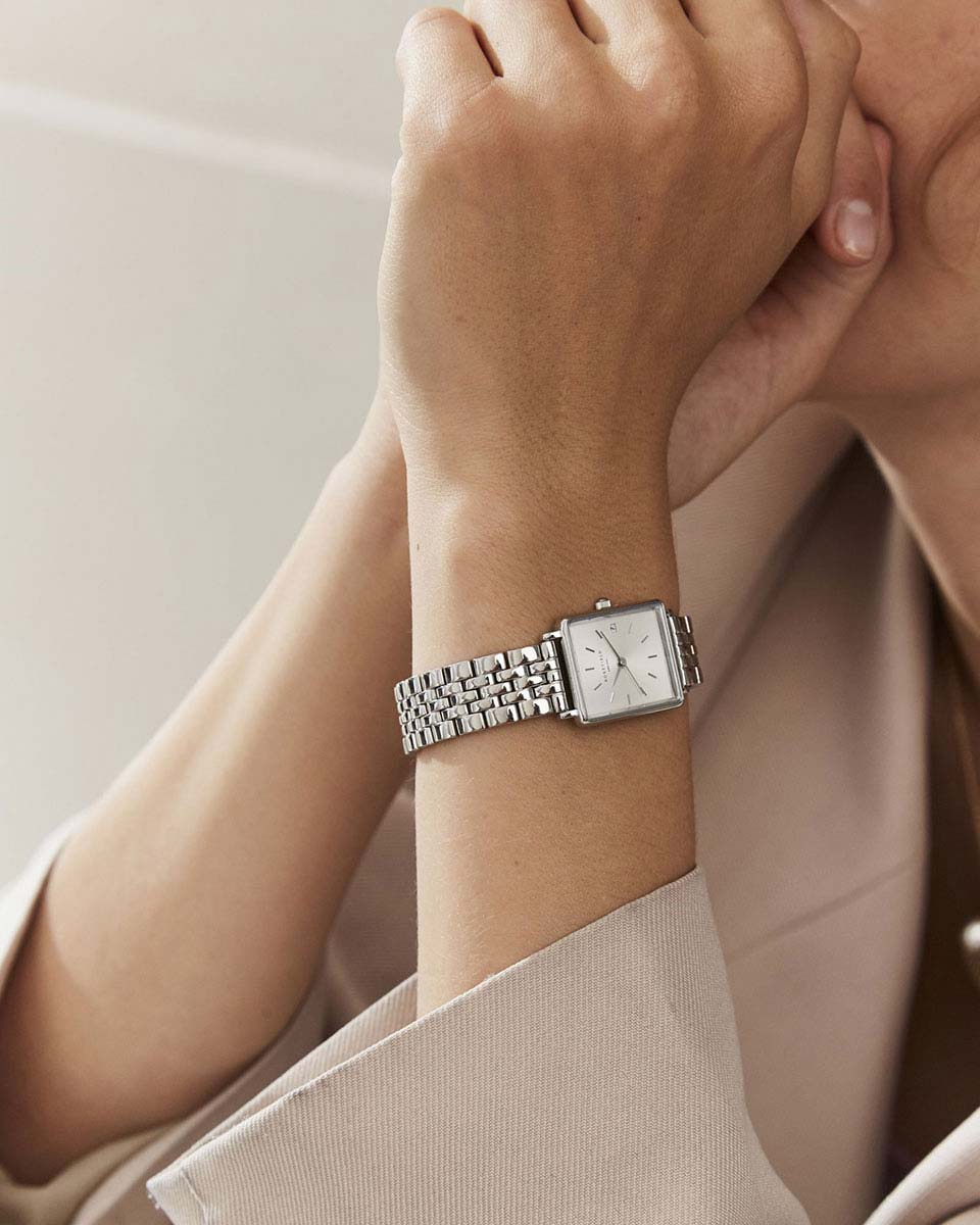 Американские женские наручные часы с кварцевым механизмом Rosefield The Boxy XS QMWSS-Q020, кварцевый механизм с высокой точностью. Класс водозащиты: 30 метров, позволит защитить корпус от случайных брызг или капель дождя. Корпус часов изготовлен из стали, цвета.