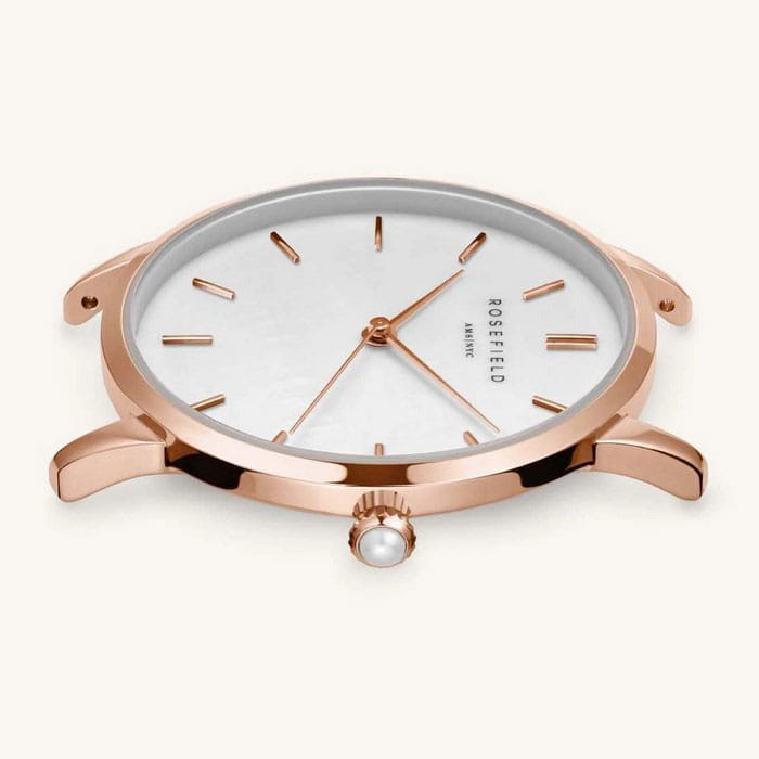 Женские наручные часы с минеральным стеклом Rosefield Pearl Edit RMRMR-R09, кварцевый механизм с высокой точностью. Класс водозащиты: 30 метров, позволит защитить корпус от случайных брызг или капель дождя. Корпус часов изготовлен из стали, цвета.