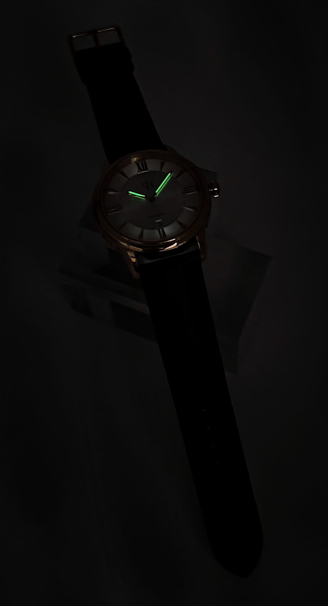 Часы обладают водозащитой до 5 атм (WR50), что позволит вам мыть руки или гулять под дождем, не опасаясь того, что в корпус попадет вода. Это делает часы подходящими для повседневной жизни и легкого отдыха. Кожаный ремешок на стандартной застёжке.