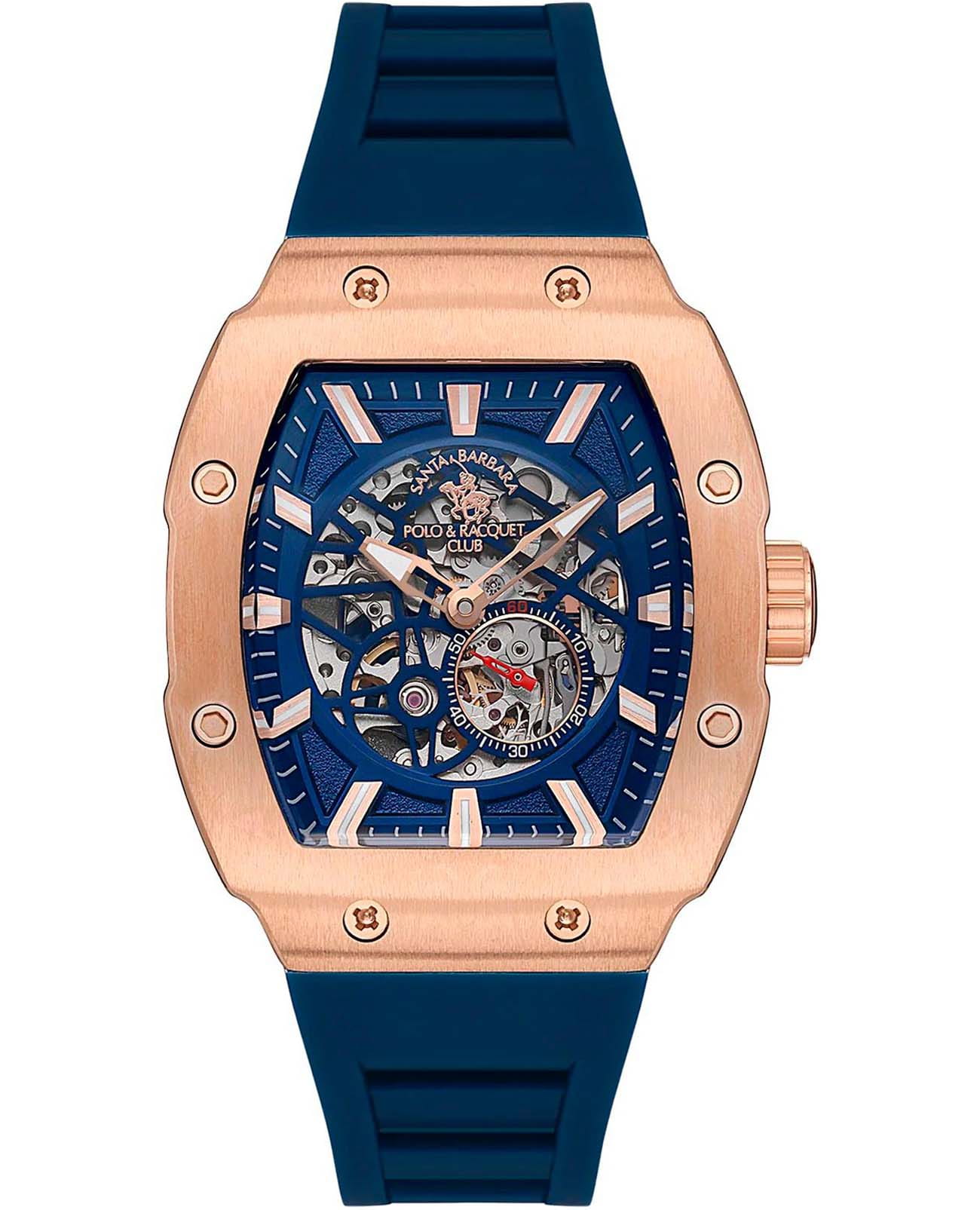 Мужские механические часы с автоподзаводом Santa Barbara Polo & Racquet Club Luxury SB.1.10549-4 — это стильный и функциональный аксессуар для современного джентльмена. Изысканный корпус из стали 316L с IP-покрытиемIP-покрытиеМетод ионного напыления. Демонстрирует повышенную устойчивость к истиранию, окислению и химическим веществам. Под воздействием высокого давления и температуры около 1500°C молекулы металла надёжно соединяются с частицами корпуса часов.  диаметром 42.3 мм. Изящный скелетонизированный циферблат украшен фирменным логотипом, с метками. Накладные лаконичные метки и стрелки с люминесцентным покрытиемЛюминесцентное покрытиеПозволяет считывать показания времени в темноте. Производители наносят на стрелки, часовые индексы, безель или поверхность циферблата светонакопительный состав, дающий холодное свечение., обеспечивающим хорошую читаемость в темноте. Циферблат защищён минеральным стекломМинеральное стеклоМинеральное стекло представляет собой искусственно выращенный минерал кварца. Такое стекло отличается особой устойчивостью к повреждениям и царапинам. Уступает по некоторым качествам сапфировому стеклу., устойчивым к царапинам и механическим повреждениям. Секундная стрелка вынесена на отдельный циферблат. Надежный силиконовый ремешок на стандартной застёжке обеспечивает комфортное и безопасное ношение. Водонепроницаемость 50 м позволяет использовать часы в повседневных условиях. Идеальный выбор для тех, кто ценит элегантность, точность и надёжность.