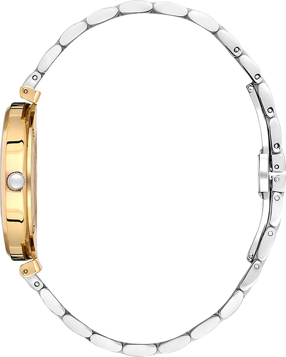 Браслет c частичным PVDPVDУльтратонкое покрытие наносится в технике вакуумного напыления, сочетает в себе нитрид титана особой прочности со слоем золота или оксида хрома. Несёт в себе декоративную или защитную функцию.-покрытием оснащён надёжной застёжкой «бабочка»Застёжка "бабочка"Такой вид застёжки дополняется предохранителями, помогающими избежать случайного раскрытия браслета. Обладают изящным исполнением. , которая обеспечивает удобство посадки и сохраняет цельность внешнего вида.