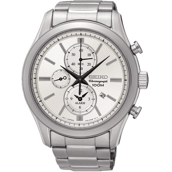 Современные японские наручные мужские часы. Круглый корпус часов выполнен из стали с антикоррозийными свойствами. Белый фон циферблата и стальные элементы дизайна. Водонепроницаемость 10 ATM. Минеральное стекло Hardlex, устойчивое к появлению царапин. Часы оснащены хронографом и будильником.