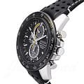 Эффектные мужские часы в современным дизайном. Механизм работает от солнечной энергии, калибр Seiko V198. Корпус круглой формы, с черным аналоговый циферблатом, выполнен из нержавеющей стали с частичным PVD покрытием. Сапфировое стекло устойчиво к царапинам. Оснащены функциями хронографа, вечного календаря и будильника. Водонепроницаемость 100 м. Часы удерживаются на руке перфорированным кожаным ремешком черного цвета.