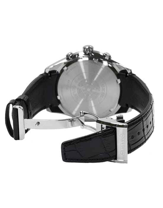 -сигнала для установки и корректировки точного времени, даты и часового пояса. Титановый корпус с фирменной зеркальной полировкой Зарацу. БезельБезельВнешний ободок, закрепляющий стекло. В спортивных часах так называется поворотное кольцо с делениями на циферблате, выполняет роль таймера – замеряет отрезки времени на шкале. Неподвижный безель – элемент декора. Однонаправленно вращающийся безель на дайверских часах позволяет фиксировать моменты погружения и выныривания на поверхность. из керамики. Сапфировое стекло. Закручивающаяся задняя крышка. Водонепроницаемость 100 метров. Люминесцентное покрытие LumiBriteЛюминесцентное покрытиеПозволяет считывать показания времени в темноте. Производители наносят на стрелки, часовые индексы, безель или поверхность циферблата светонакопительный состав, дающий холодное свечение.. Застёжка с фиксатором препятствует случайному расстёгиванию ремешка из кожи крокодила. Вечный календарьВечный календарьКлассическое часовое усложнение, представляющее собой календарь, рассчитанный на несколько лет вперёд (стандартно – до 2099 года). Определяет текущую дату, день недели, месяц., функция мирового времениМировое время Полезное часовое усложнение, отображающее время в основных городах и известных областях по всему миру, оно связано с часовыми поясами, удобно для путешественников и бизнесменов. – 40 часовых поясов. Диаметр корпуса: 44,8 мм.