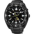 Спортивные часы с механизмом Seiko Kinetic, калибр 5M85, с функцией второго времени. Круглой  корпус и браслет часов  выполнены из высокопрочной стали с антикоррозийными свойствами с PVD покрытием. Черный фон циферблата и контрастные 3D элементы дизайна. Часы снабжены минеральным стеклом, устойчивым к царапинам. Водонепроницаемость 10 ATM.