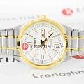 Модель Seiko SARV004 — это элегантные автоматические часы с выразительным двухцветным дизайном и надёжной функциональностью. Корпус диаметром 42 мм выполнен из нержавеющей стали, а элементы корпуса и браслета украшены золотистым PVD-покрытиемPVDУльтратонкое покрытие наносится в технике вакуумного напыления, сочетает в себе нитрид титана особой прочности со слоем золота или оксида хрома. Несёт в себе декоративную или защитную функцию., придающим модели классический и утончённый облик. Водозащита составляет 100 метров, что делает часы универсальными для повседневного использования. Фиксированный стальной безельБезельВнешний ободок, закрепляющий стекло. В спортивных часах так называется поворотное кольцо с делениями на циферблате, выполняет роль таймера – замеряет отрезки времени на шкале. Неподвижный безель – элемент декора. Однонаправленно вращающийся безель на дайверских часах позволяет фиксировать моменты погружения и выныривания на поверхность. с золотистым акцентом обрамляет белый циферблат с минутной шкалой. Золотистые стрелки и метки покрыты люминесцентным покрытиемЛюминесцентное покрытиеПозволяет считывать показания времени в темноте. Производители наносят на стрелки, часовые индексы, безель или поверхность циферблата светонакопительный состав, дающий холодное свечение., обеспечивая хорошую читаемость даже в условиях низкой освещённости. На 3 часах размещено окно дня недели и даты. Циферблат защищён прочным минеральным стекломМинеральное стеклоМинеральное стекло представляет собой искусственно выращенный минерал кварца. Такое стекло отличается особой устойчивостью к повреждениям и царапинам. Уступает по некоторым качествам сапфировому стеклу. Hardlex, устойчивым к царапинам и ударам. Внутри установлен автоматический калибр 4R36 с функцией ручного подзавода, остановкой секундной стрелки и запасом хода до 41 часа. Браслет из нержавеющей стали с центральными звеньями в золотистом тоне дополнен удобной раскладной застёжкойРаскладная застёжкаТакой тип застёжки используется только на браслетах из металла. Она никогда не раскрывается полностью, происходит разделение на 2 и более частей. Раскладывающая застёжка снизит вероятность потери часов к минимуму. с кнопками. Seiko SARV004 — это надёжный и выразительный выбор для тех, кто ищет классический стиль с акцентами, подчёркивающими вкус и уверенность.